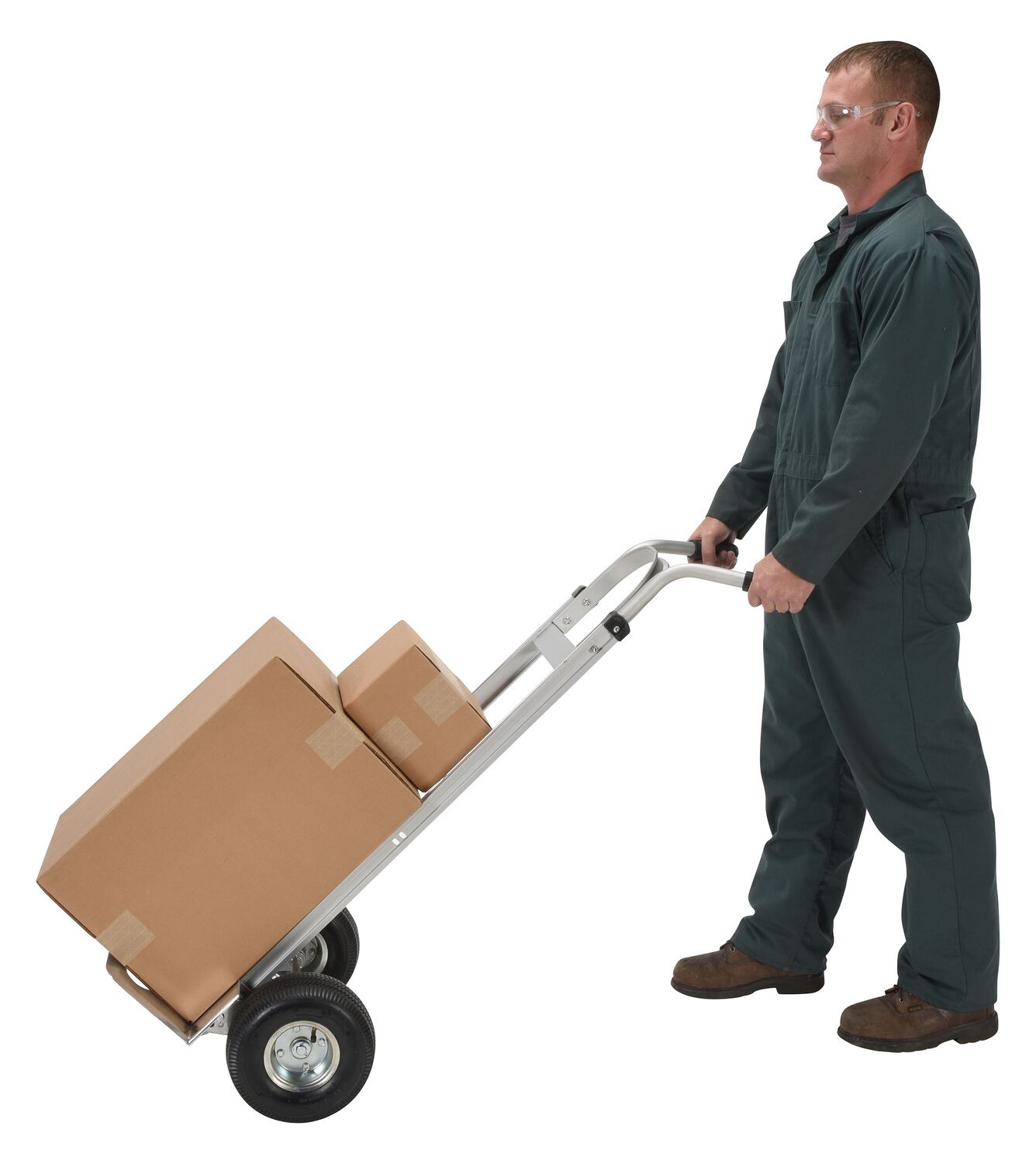 Maximize control for different loads with our Dual Handle Hand Trucks. These hand trucks can transport boxes or crates wherever they are needed. Transport loads smoothly and evenly over rough or uneven floors. Ships knockdown. Choose steel or aluminum, available with pneumatic or solid rubber wheels. Assembly required.