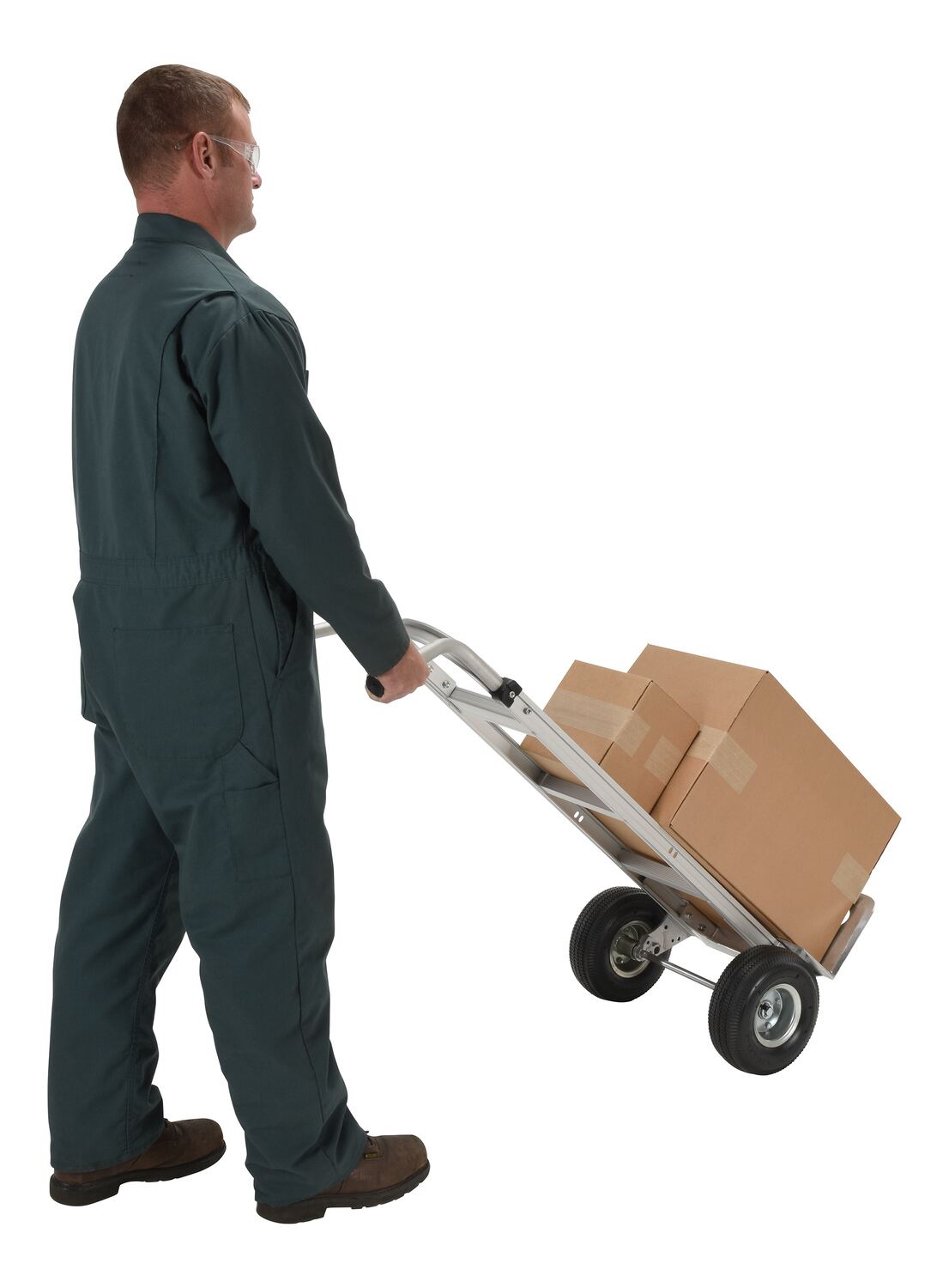• Hand truck design transports loads over rough floors