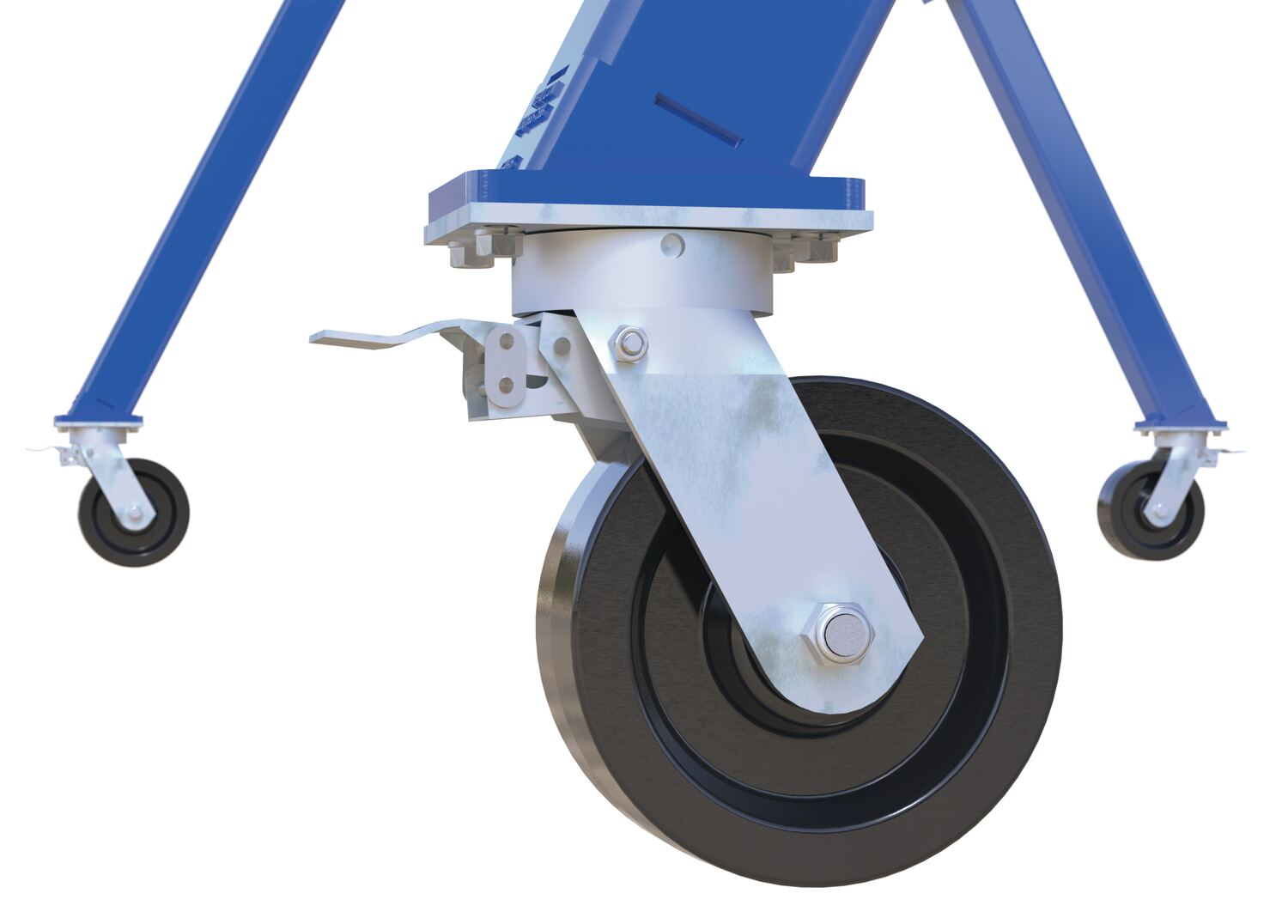 Steel Adjustable Height Gantry Crane with Total Locking Phenolic Casters 20 Ft. Wide x 14 Ft. Max Usable Height 8,000 Lb. Capacity BlueThe adjustable height steel gantry crane is designed for transporting and positioning materials along the beams length. The cranes beam height can be adjusted to better conform to the working conditions making it both ergonomically friendly and cost effective. Facilitate easy mobility from one area to another with total locking casters. Height is adjustable in 6" increments. Do not move units while loaded. Hoist and trolley can be ordered separately. A painted blue finish protects the unit from rust. Designed for semi-permanent or permanent applications.