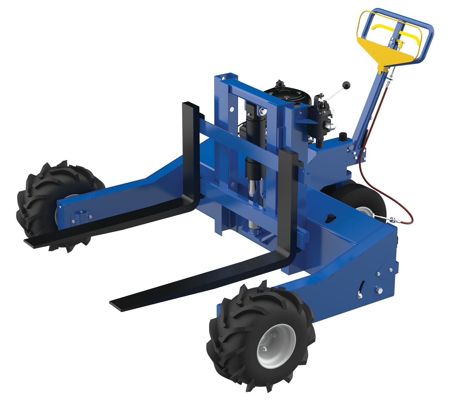 Steel Heavy Duty 344CC Gas Powered Drive and Lift All-Terrain Pallet Truck 36 In. Long Adjustable Width Forks 2,000 Lb. Capacity Blue