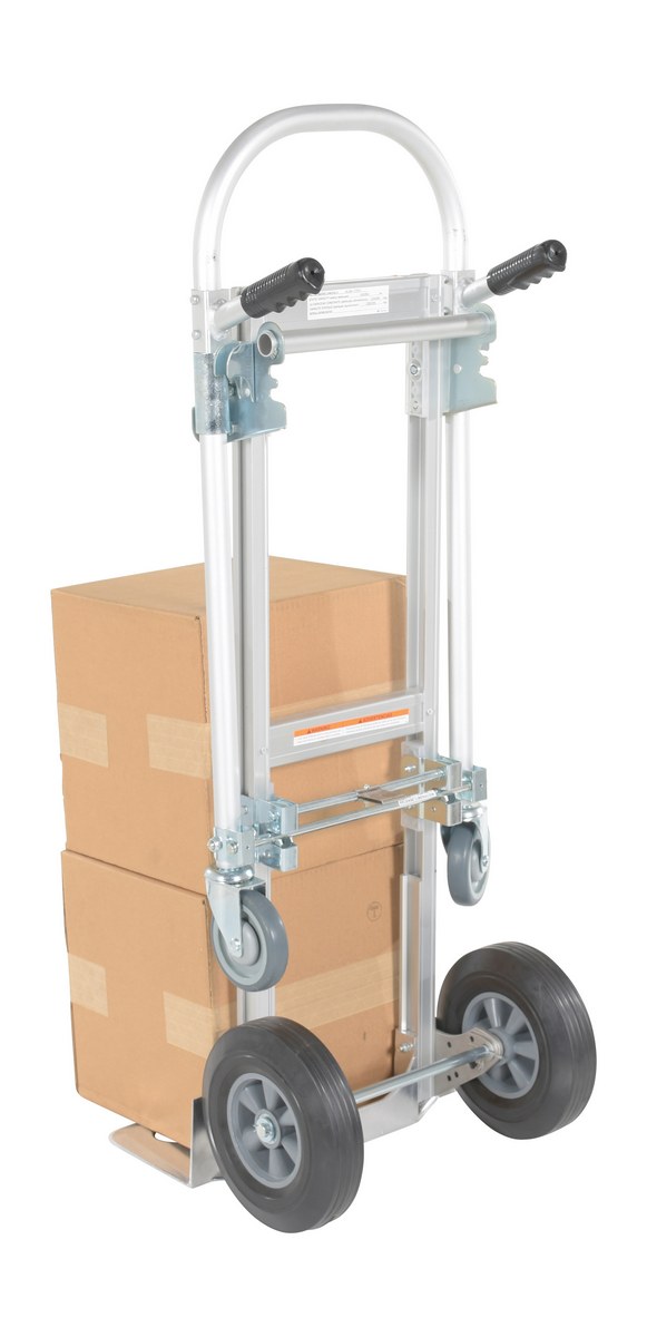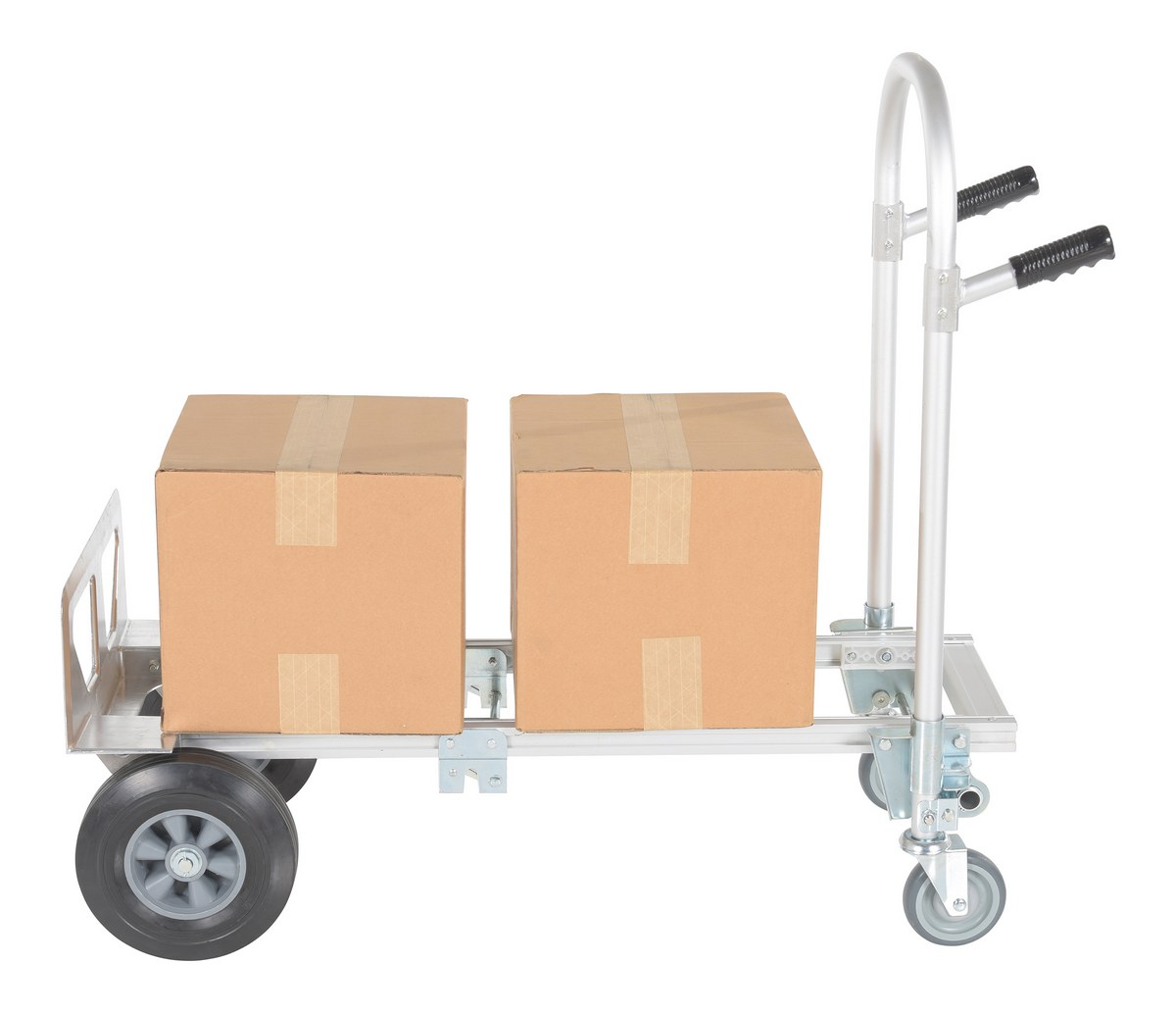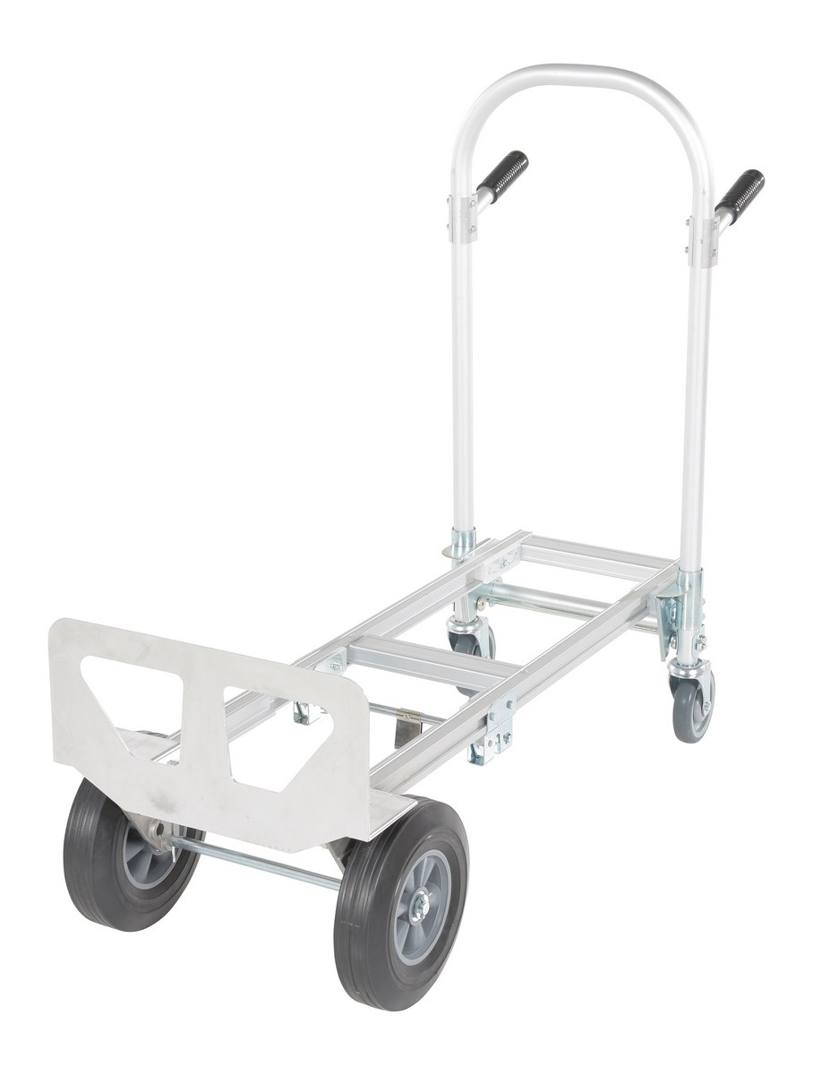 The deluxe Aluminum Hand Truck converts from hand truck to platform truck to maximize control for different types of loads. This hand/platform truck can transport boxes wherever they are needed. Transport loads smoothly and evenly over rough or uneven floors.
