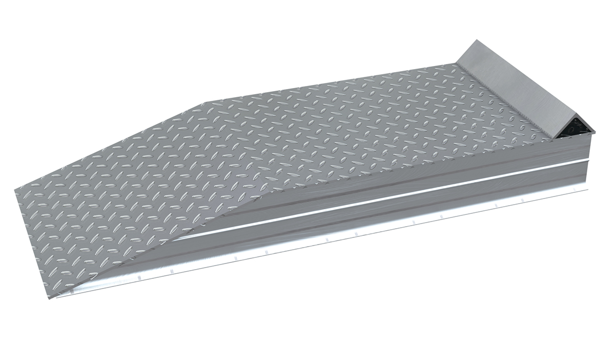 Aluminum Tread Plate Wheel Riser with Roll Off Guard 78 In. x 24 In. x 14-1/16 In. 30000 Lb. Capacity SilverA standard wheel riser is a great asset to have available when working in the shipping and receiving industries. But, this wheel riser is more than standard. With an aluminum construction, this unit includes a roll off edge guard that acts as a stop point. This allows the user to safely mount the wheel riser without the fear of going too far. The raised tread surface gives added traction throughout the ascending and descending action.