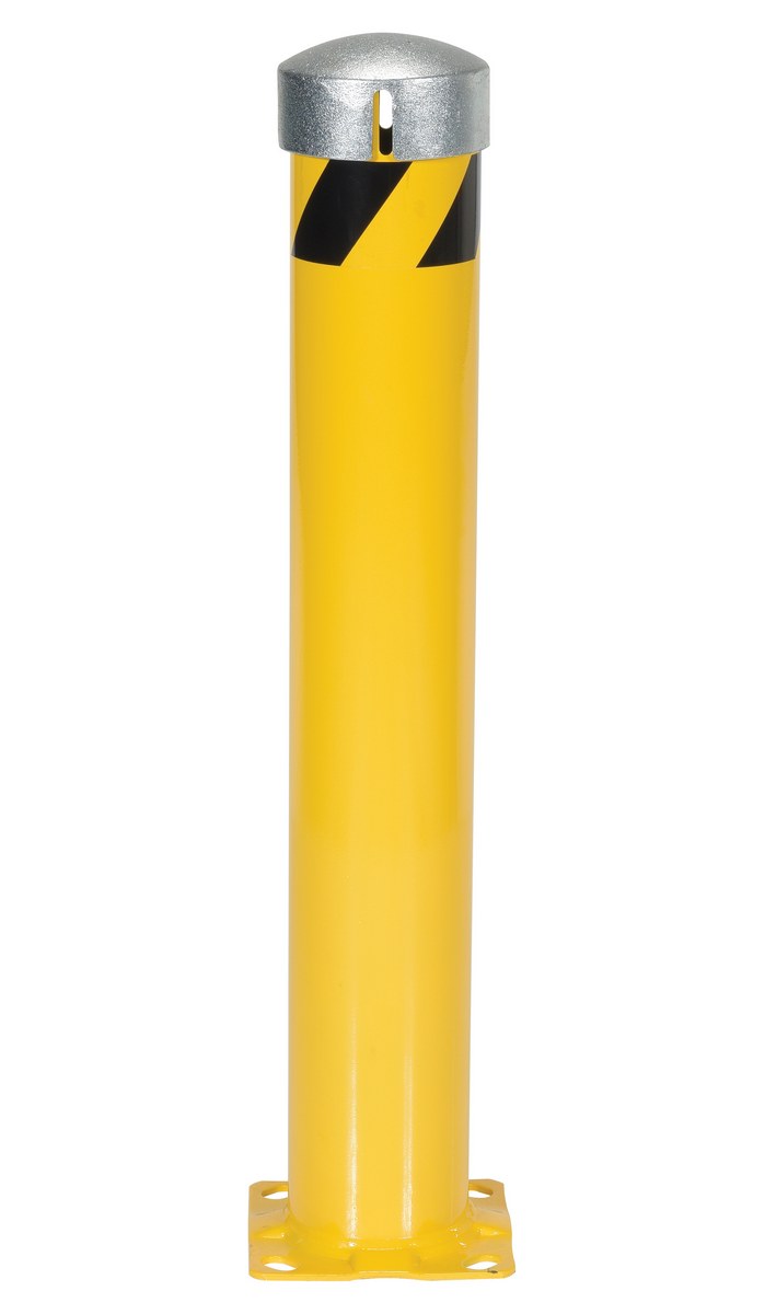 Steel Pipe Bollard with Removable Bolt-On Steel Cap and Slots 36 In. x 5-1/2 In. Yellow