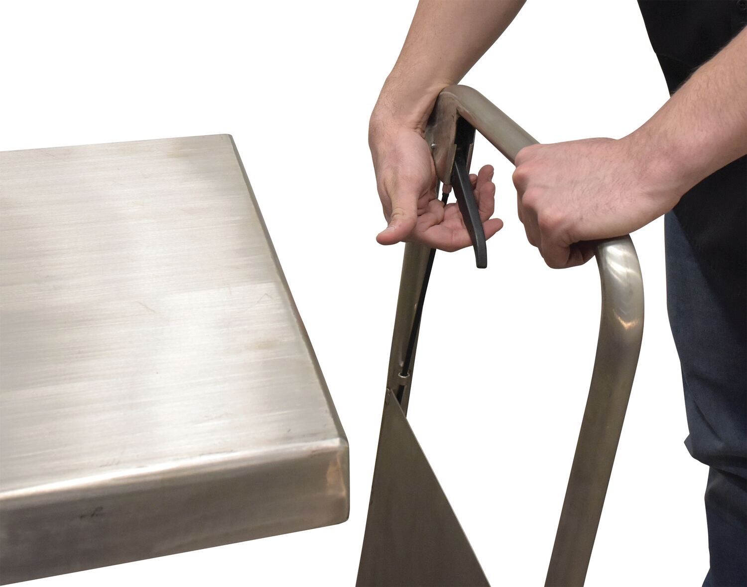 The partially Stainless Steel Hydraulic elevating cart is available for transport heavy loads in lab, food service and health care applications. Not suitable for wash-down applications. The platform, handle, base frame, caster rigs, and hardware are 304 grade stainless steel. The wheels are poly-on-poly. Features an internal safety velocity fuse in each cylinder.