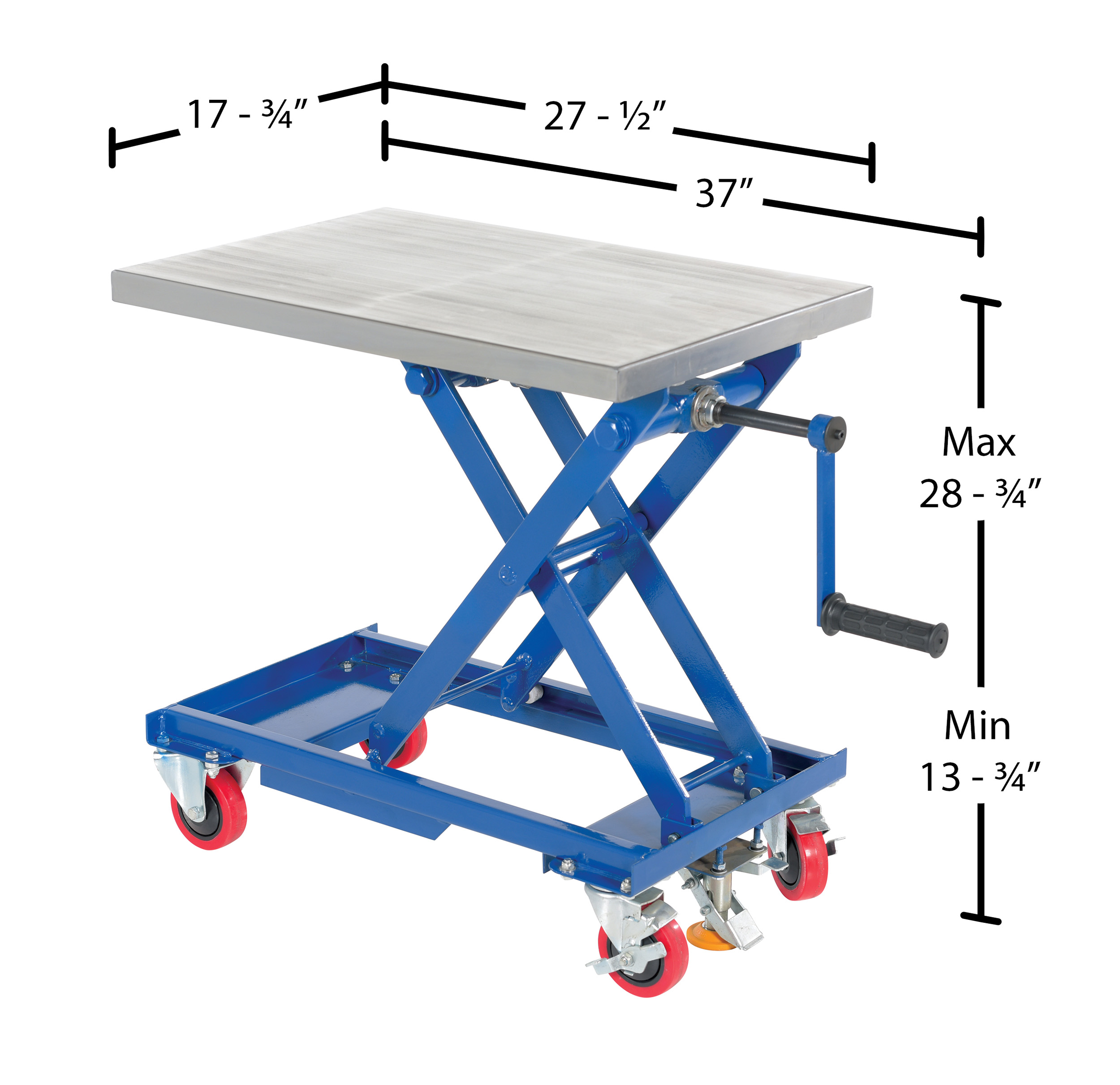 Steel Mechanical Scissor Cart with Hand Crank 17-3/4 In. x 27-1/2 In. 330 Lb. Capacity Blue/Silver