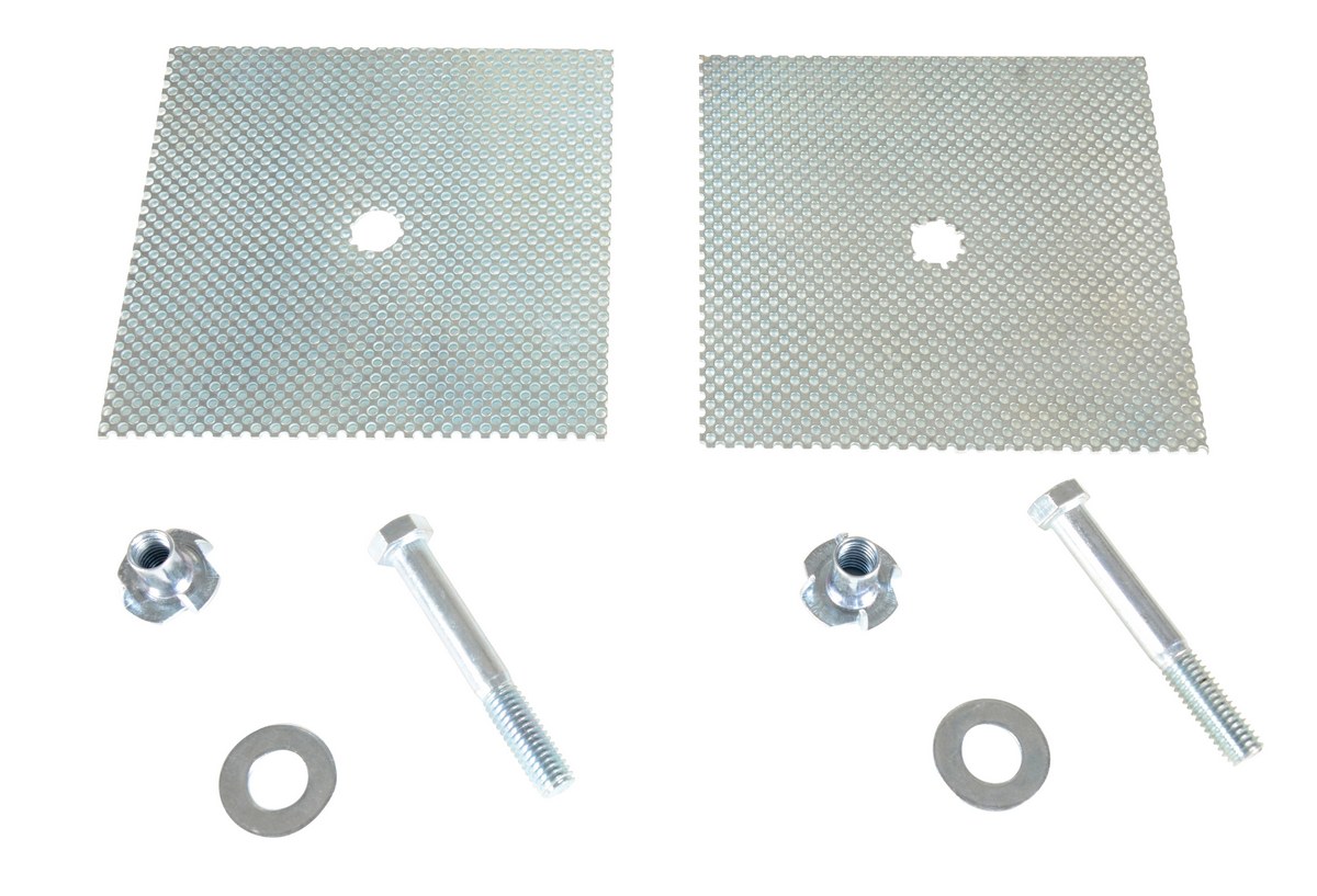 Car stop glue down anchor plate includes anchor plates, T-nuts, bolts and washers. Requires two part epoxy glue which is not included.