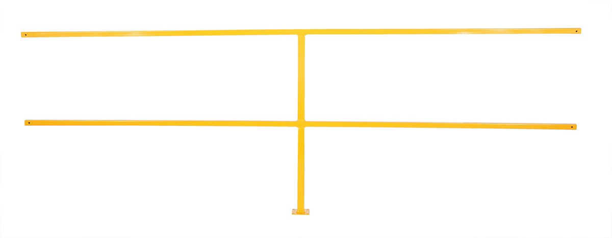 Steel square safety Handrail connection tubing (with hardware) provides an economical way to protect people and machinery. Applications include loading docks, floor openings, walkways, and mezzanines. Highly visible safety yellow powder coat finish.