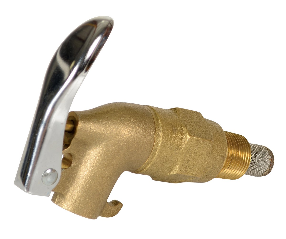 Quickly and easily dispense drum contents with our manual drum faucet. Constructed of brass with spring-loaded lockable handle and non-adjustable nozzle. PTFE gasket. Integral flame arrestor standard.