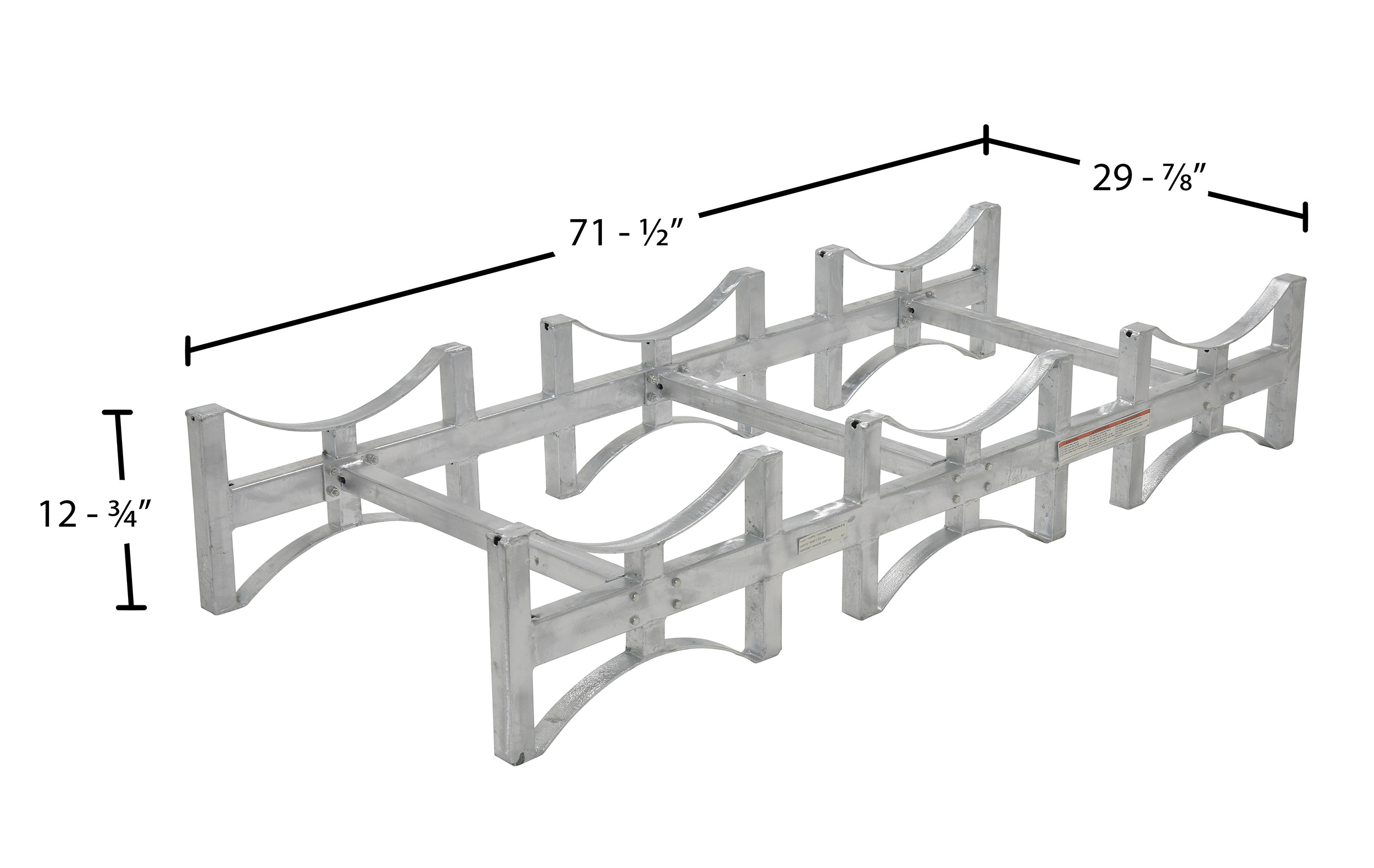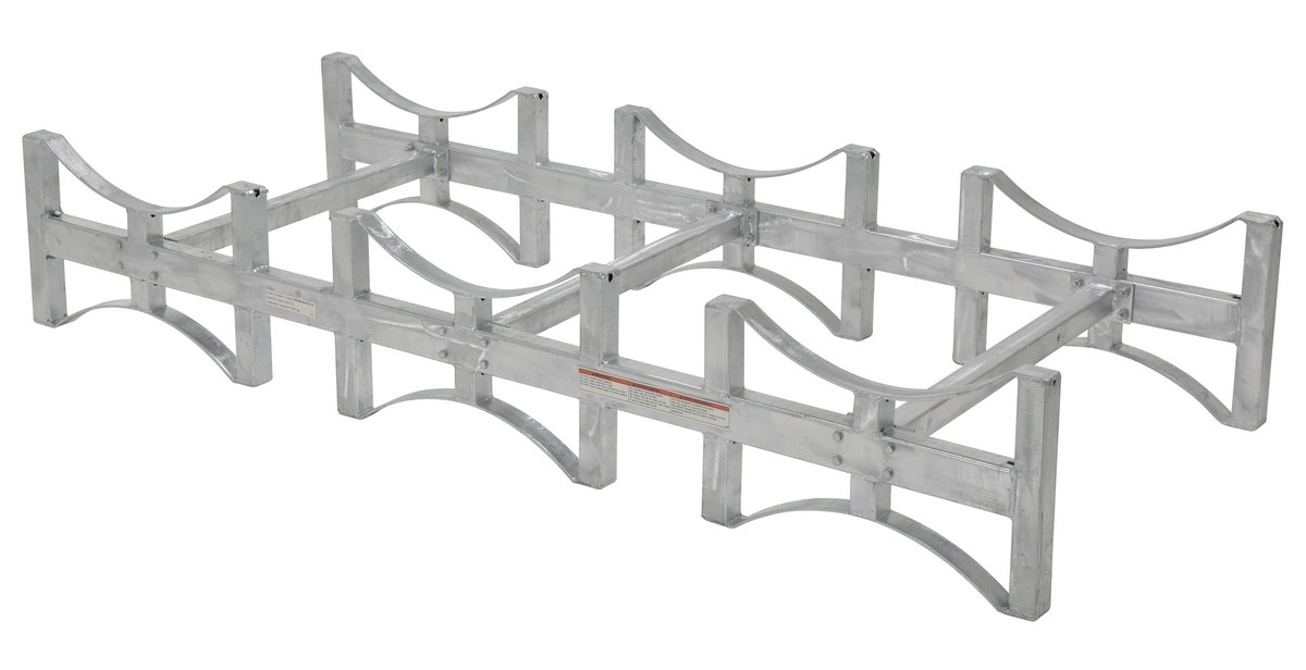 Galvanized Steel Stackable Drum Rack 3 Drum 55 Gallon 2400 Lb. Capacity GrayThis steel drum rack has four-way fork truck access. Not recommended for stacking more than four (4) racks high. All steel construction with formed steel cradles. Bolt together assembly with hardware included.