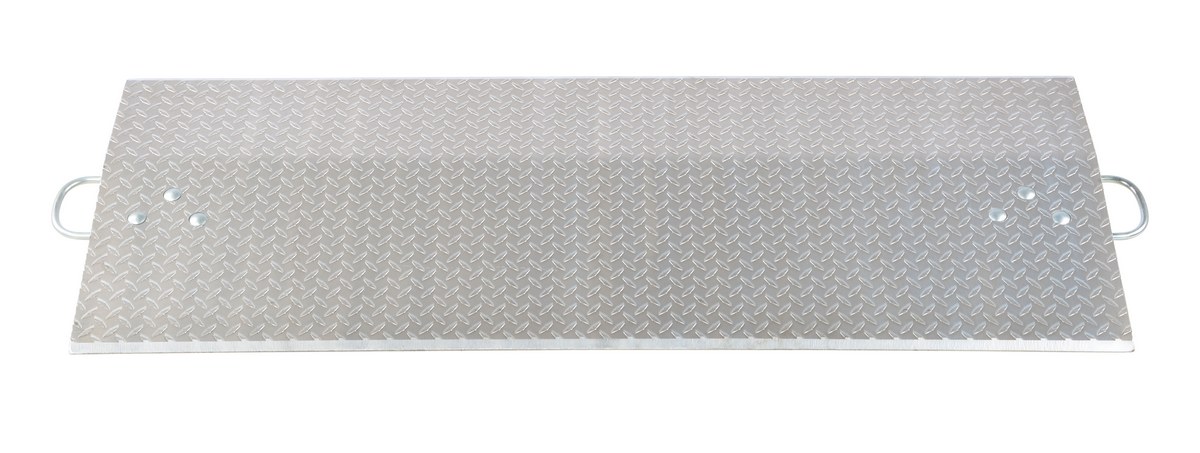 The aluminum economizer dock plate is an economical way to speed up truck loading and unloading. The unit spans the opening between dock and trailer to allow pallet or hand trucks along with traffic to safely move in and out of the trailer. The dock plate is constructed of high strength, non-skid aluminum alloy tread plate. The lightweight design with bolt on zinc plated legs and handles on each side makes portability easy. Locking legs for OSHA compliance. Not for use with fork trucks.