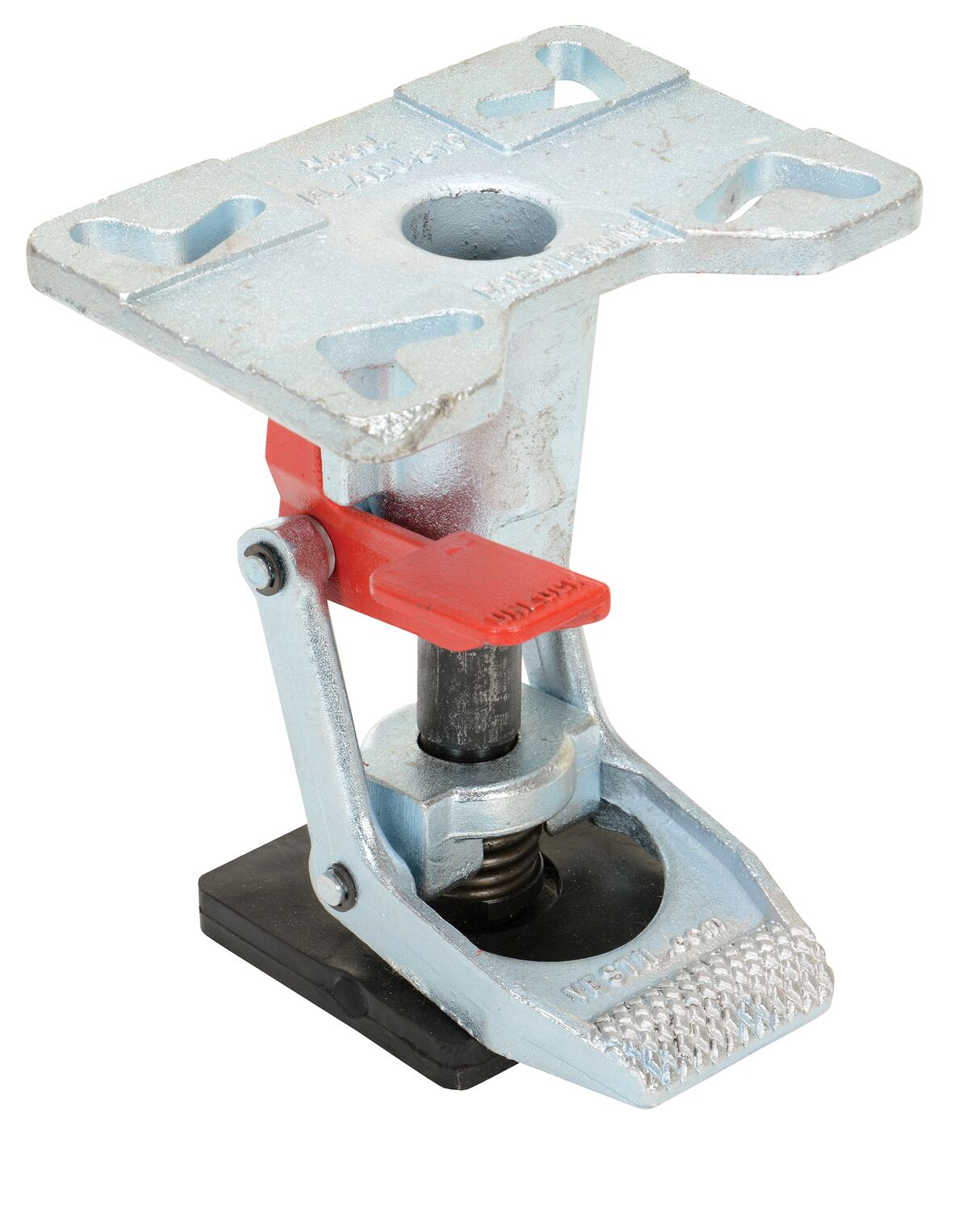 This one of a kind adjustable height Floor Lock includes an adjustable height foot pad that will work on carts with different caster heights. The adjustable height feature provides uniform locking and safety unlocking force for better ergonomic operation. This feature also keeps the floor lock working properly as spring and pads wear over time. Height is adjustable by turning the bottom pad. The bottom pad includes suction-cups for extra grip.