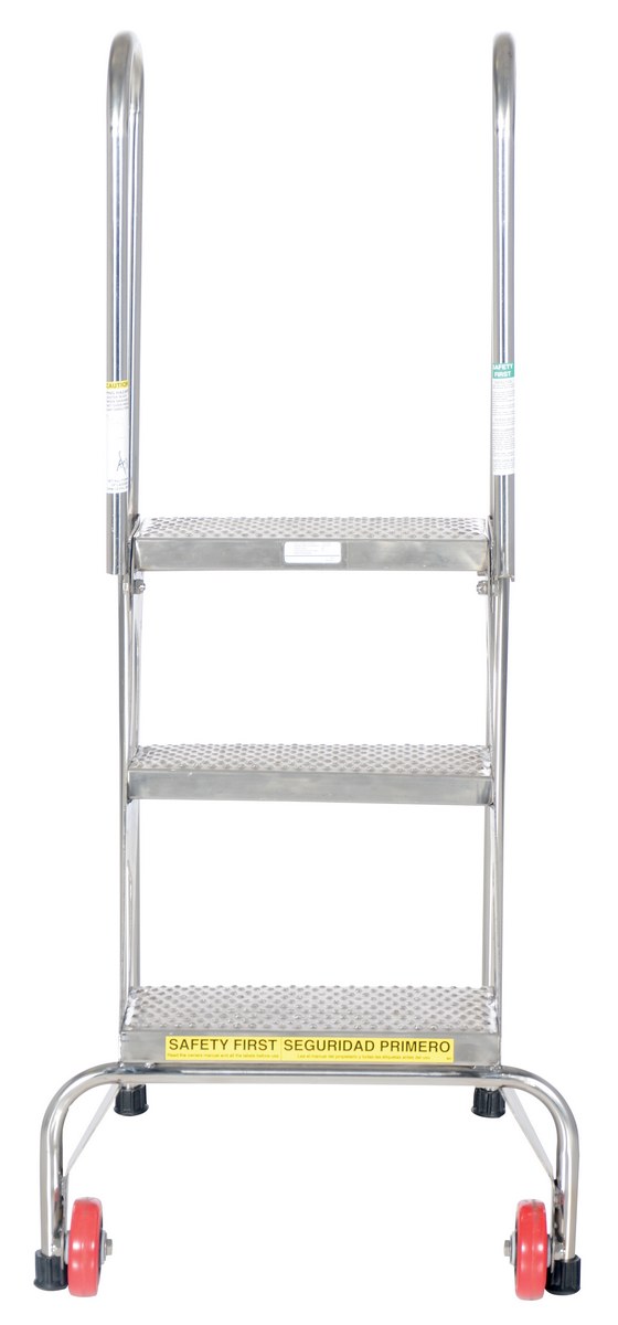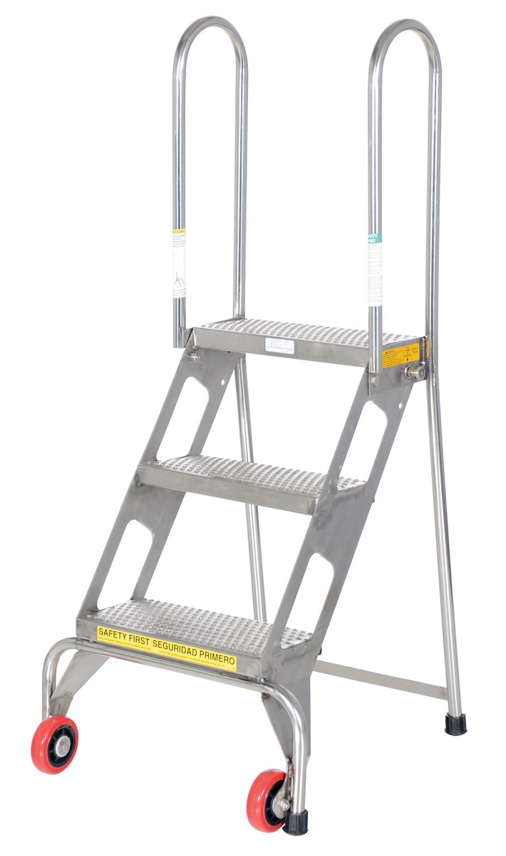 Stainless Steel Folding Ladder with Wheels 3 Step 350 Lb. Capacity Blue
