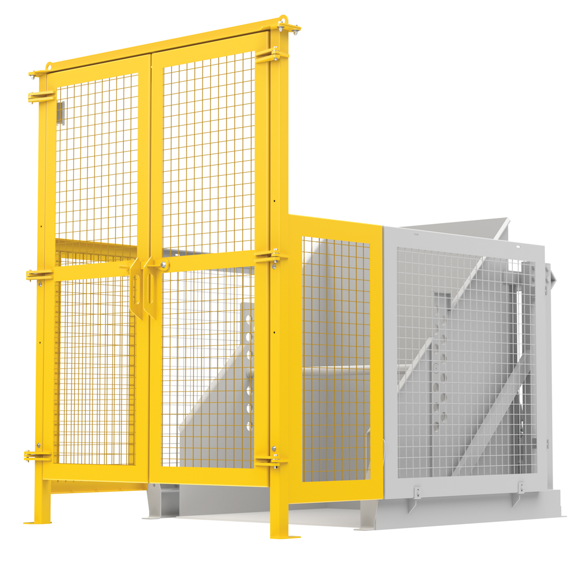 A great addition to the hydraulic box dumper, this gate promotes safety while maneuvering heavy objects. With a tall structure and a strong construction the gate must be closed to allow functionality of the box dumper. Once the gate is latched the unit will function normally. The mesh design lets the user be shielded from possible falling objects, while still maintaining visibility on all on board items.
