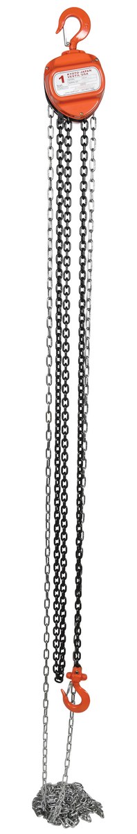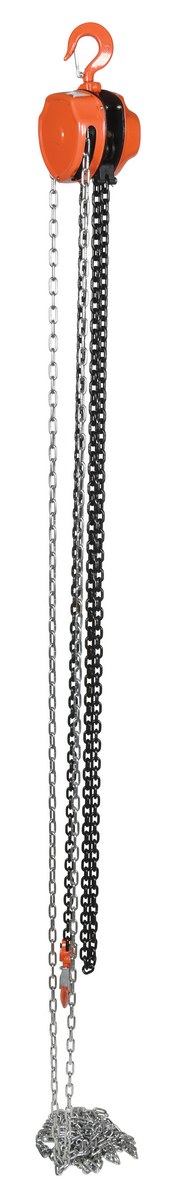 This portable, lightweight hand Chain Hoist is durable and easy to operate. Compact design and low headroom allow installation in confined areas. Enclosed double ratchet pawls with self adjusting disc brake standard. Designed with a safety factory four (4) times rated capacity. Individually tested at 150% rated capacity. Features black chain tempered to ISO 3077, pull chain, hardened two-stage gears and forged steel upper and lower hooks with safety latches. Constructed of high quality steel components ideal for industrial applications.