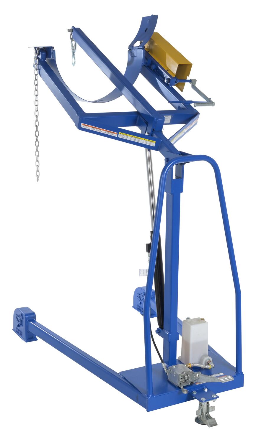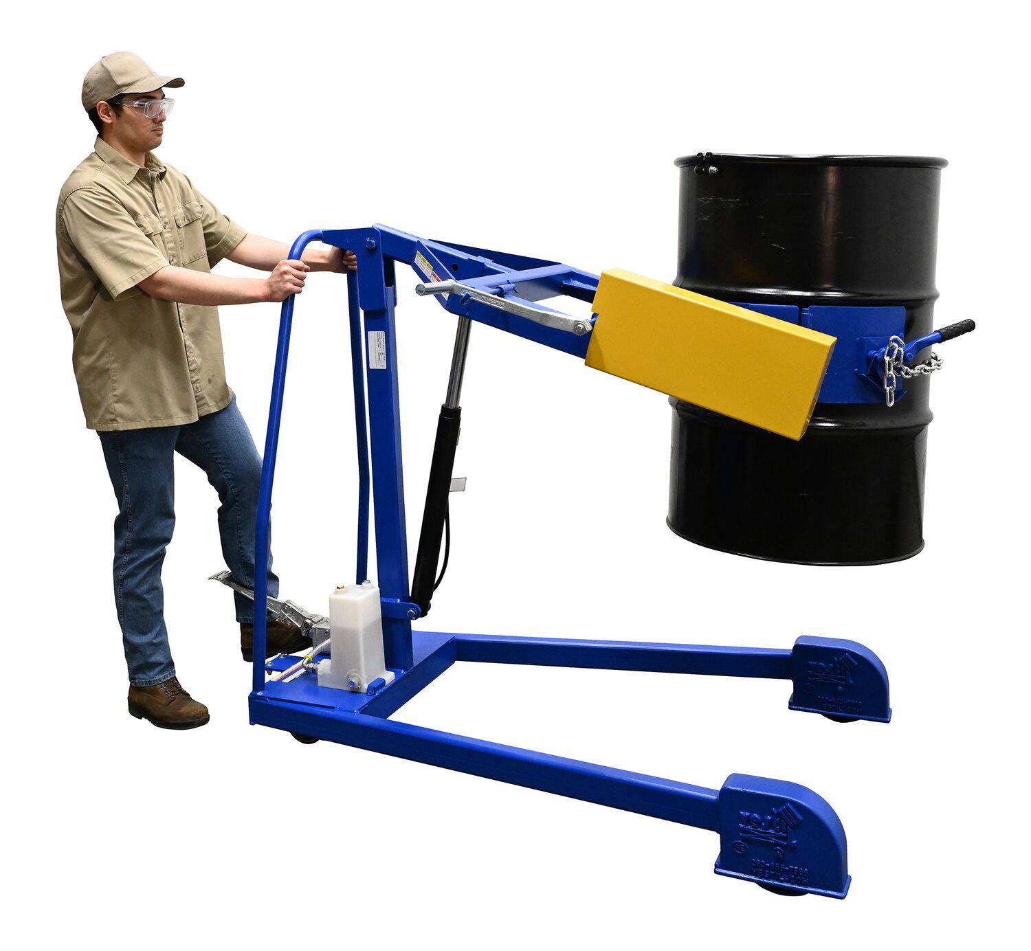 Steel Portable Hydraulic Drum Carrier, Rotator and Boom 71-1/4 In. Lift Height 800 Lb. Capacity Blue / Yellow