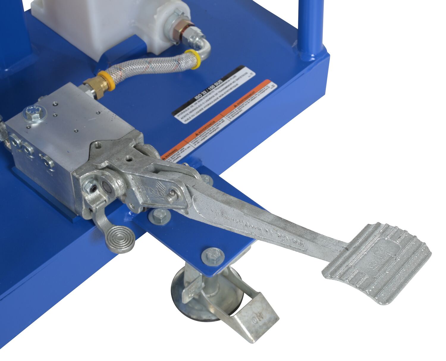 The portable Hydraulic drum carrier/rotator/boom allows one person to lift, transport, and dispense fully loaded steel drums with ease. It features a manual foot pump hydraulic lift and rolls on casters and wheels. This unit has a chain rotation to rotate the drum. This unit features a lifting boom attachment which stores on the outriggers.