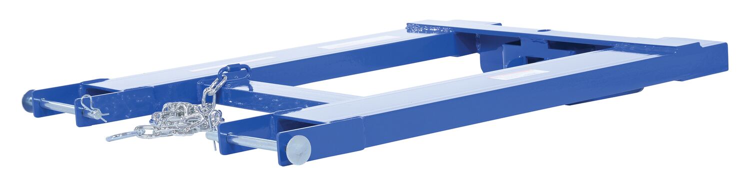Convert your fork truck into a tow truck for moving trailers and other portable equipment using this Fork Truck base. Simple design slides onto forks and secures into place with pin style tine locks. Welded steel construction with powder coat blue finish.
