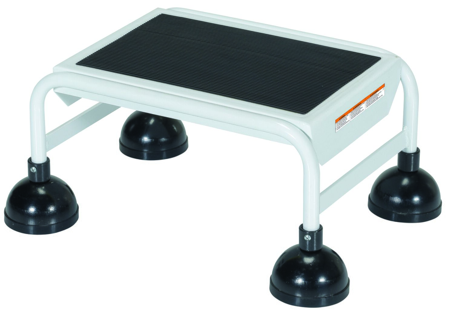 Steel Commercial Spring Loaded Ladder 1 Step 16 In. Wide with Anti-Slip Rubber Mat 300 Lb. Capacity White