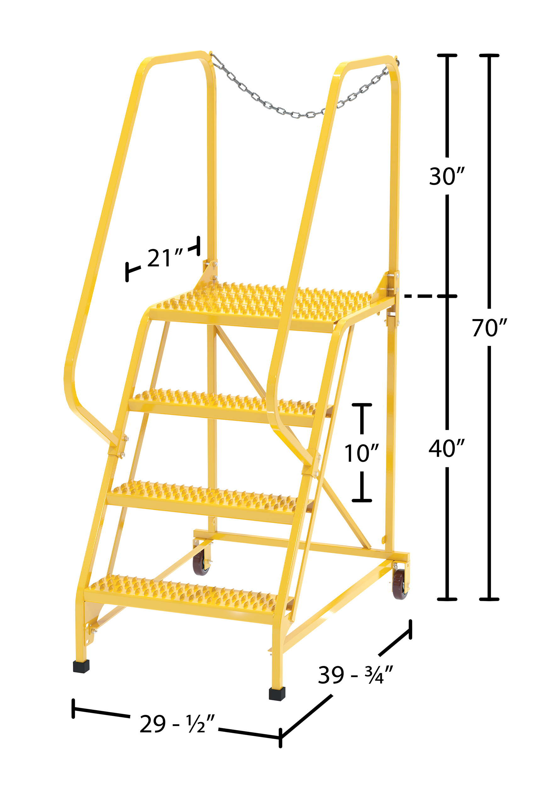 Top Step Height (in.): 40 Hand Rail Height (in.): 30 Top Platform Length (in.): 21