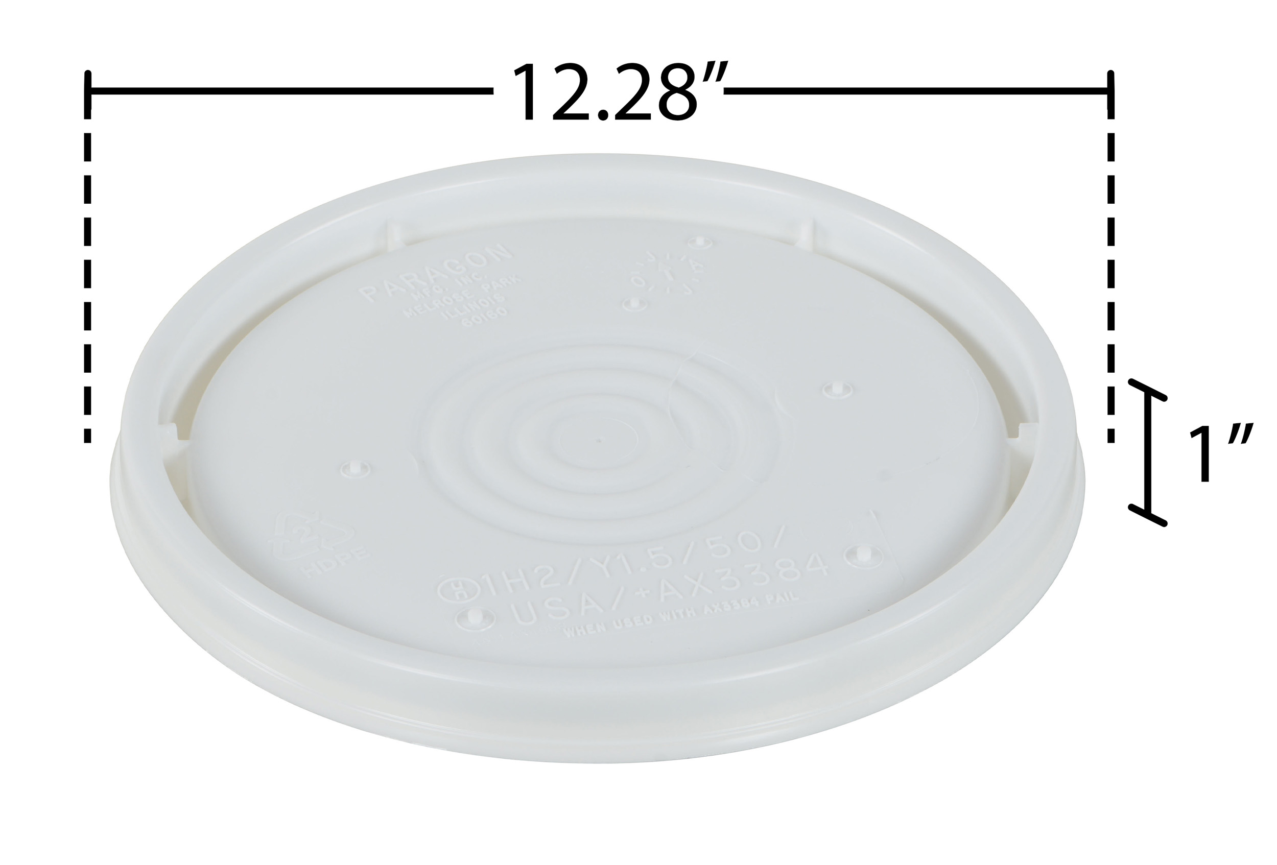 UN rated plastic lid for use with plastic pails. This plastic lid is constructed of one-hundred percent (100%) prime virgin high density polyethylene (HDPE) and complies with FDA regulations. Suitable for shipping according to D.O.T. standards. UN rated 1H2/Y1.5/50.when Used with UN rated pails.