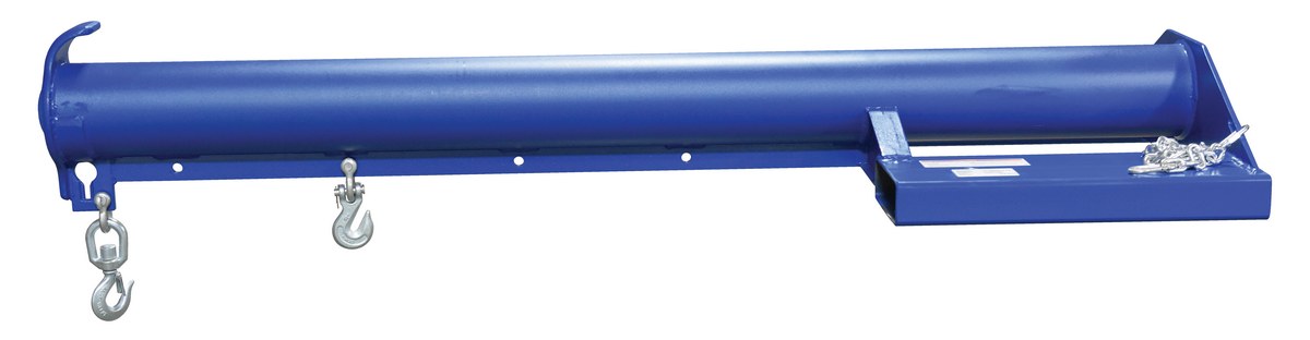 Unique performance, convenience, and safety features are built into every lift master boom. Fabricated from structural steel with welding to meet AWS creates a rugged and durable boom that will provide long term service. A safety restraint secures the boom to the fork truck for safe operation. Includes two (2) lifting hooks.