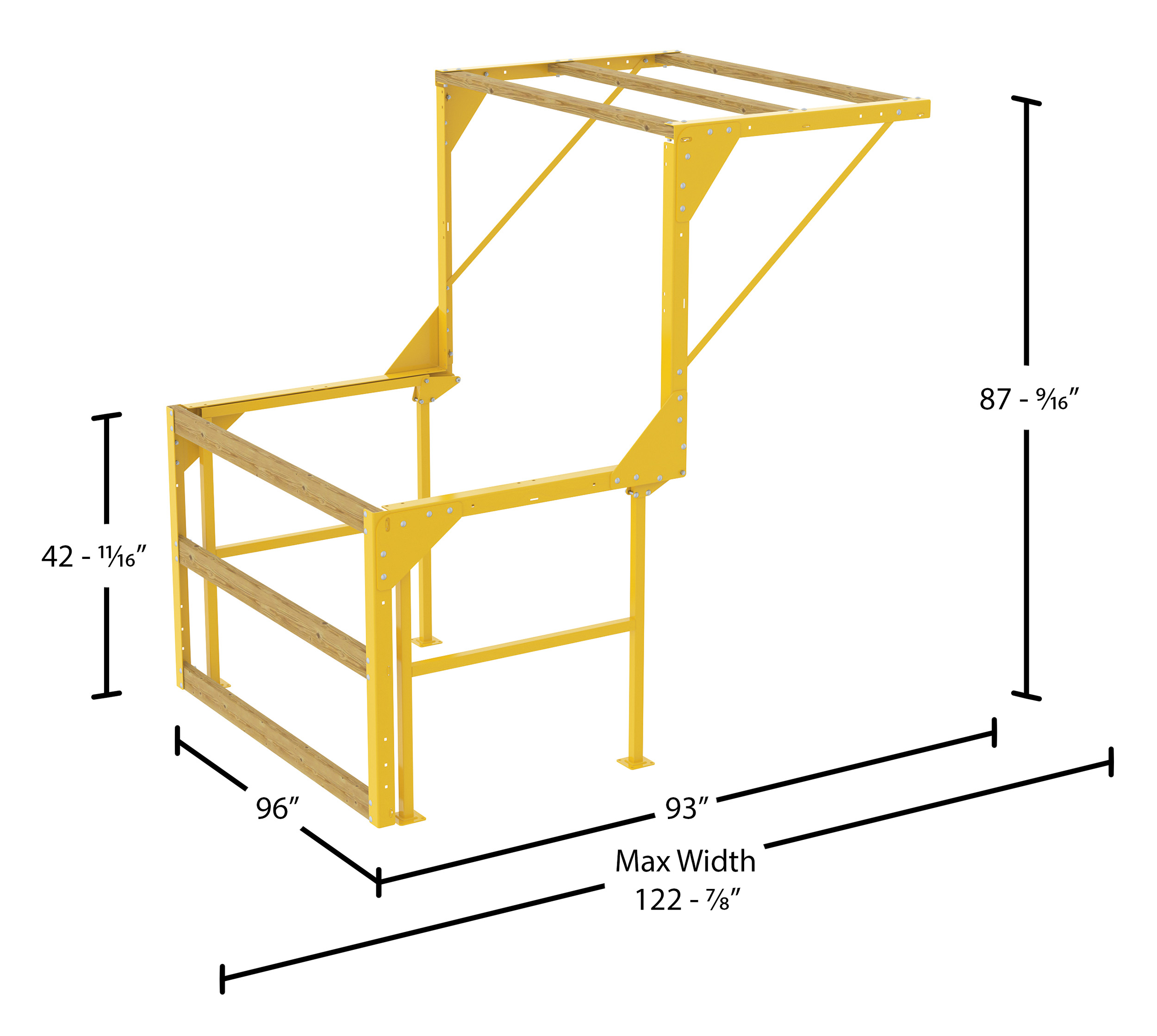 This mezzanine safety gate provides an OSHA required 42" high handrail. To accommodate the load height when utilizing a standard 48"W x 48"D pallet load positioning within the gate is critical. For greatest amount of clearance and item placement flexibility, shorter loads are recommended. Gate design is balanced to allow for easy operation without use of springs. Construction is welded steel with a baked-in powder-coated finish for increased toughness. Ships knockdown to the customer. Wooden cross rails are not included and must be supplied by the customer.