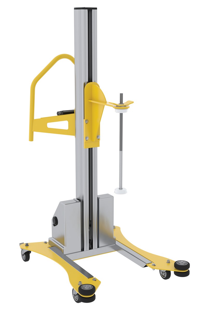 The material pallet stretch wrap machine provides the flexibility to apply stretch wrap film at any work station. This portable walk around stretch wrapper has electronic touch sensitive controls to make packaging tasks easier. Powerful DC battery powered lift moves film wrap up and down as operator simply walks around the packages. Designed to help wrap large and tall packages that could not be wrapped on the standard carousel stretch wrappers. Features an easy reload film system. The upright is constructed of aluminum while the rest is steel construction with powder coat yellow finish. Film not included.