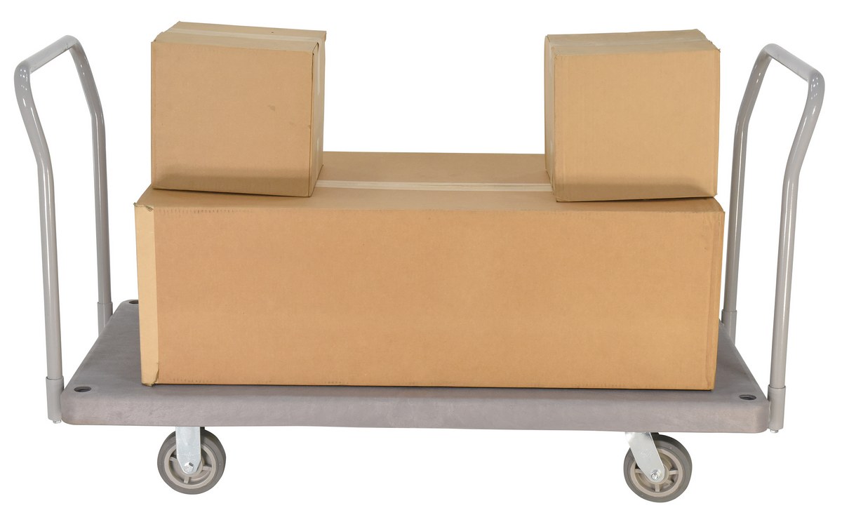 Plastic Heavy Duty Platform Truck 2 Handles 67-1/2 In. x 30 In. x 34 In. 2000 Lb. Capacity Gray