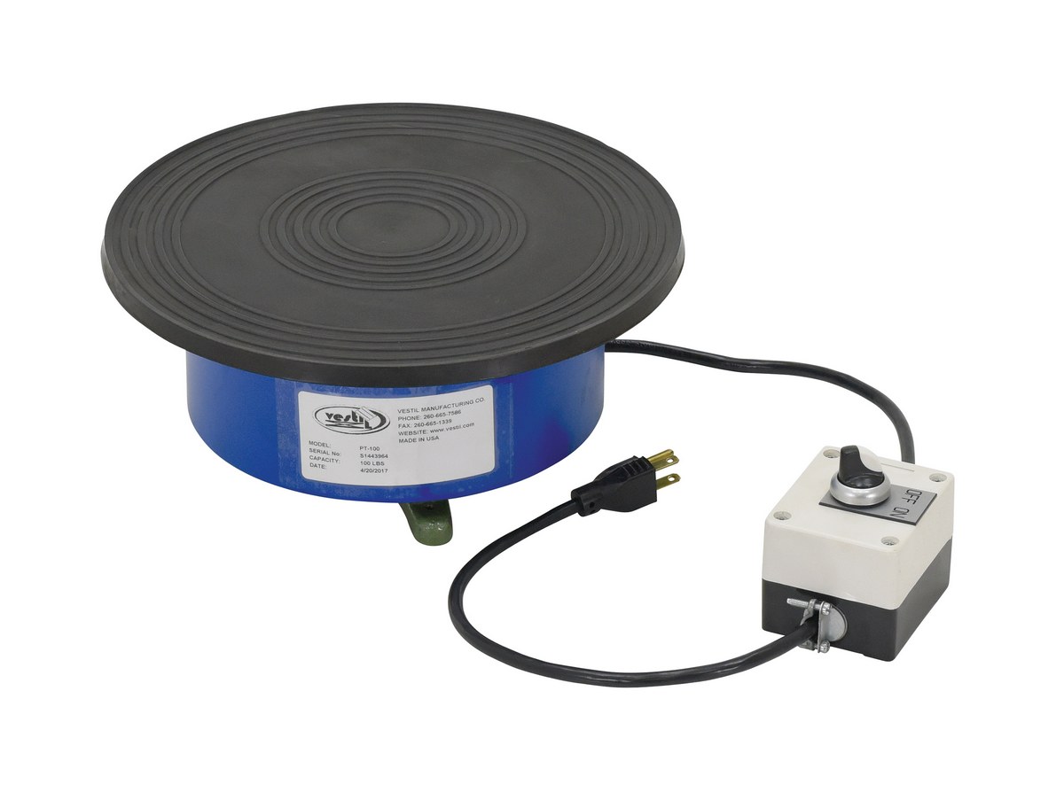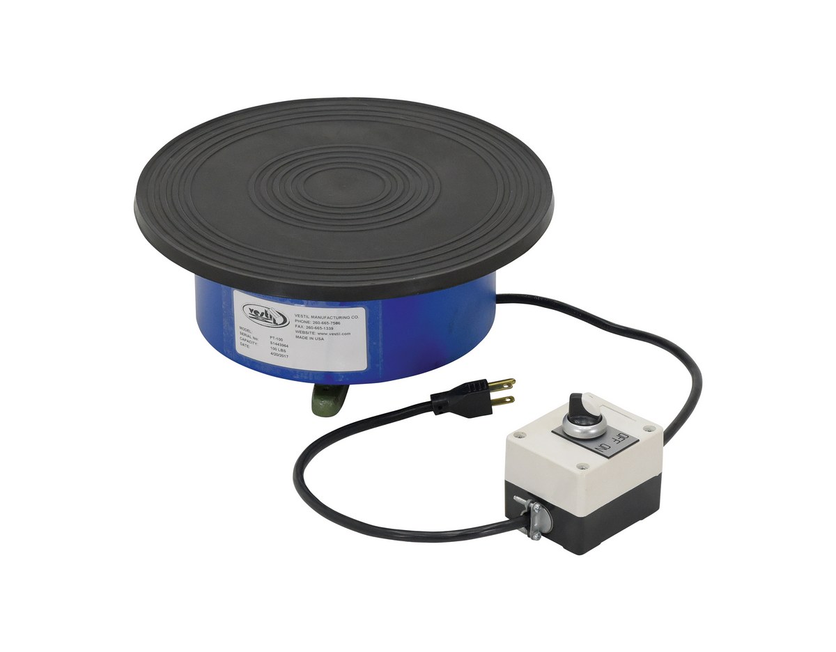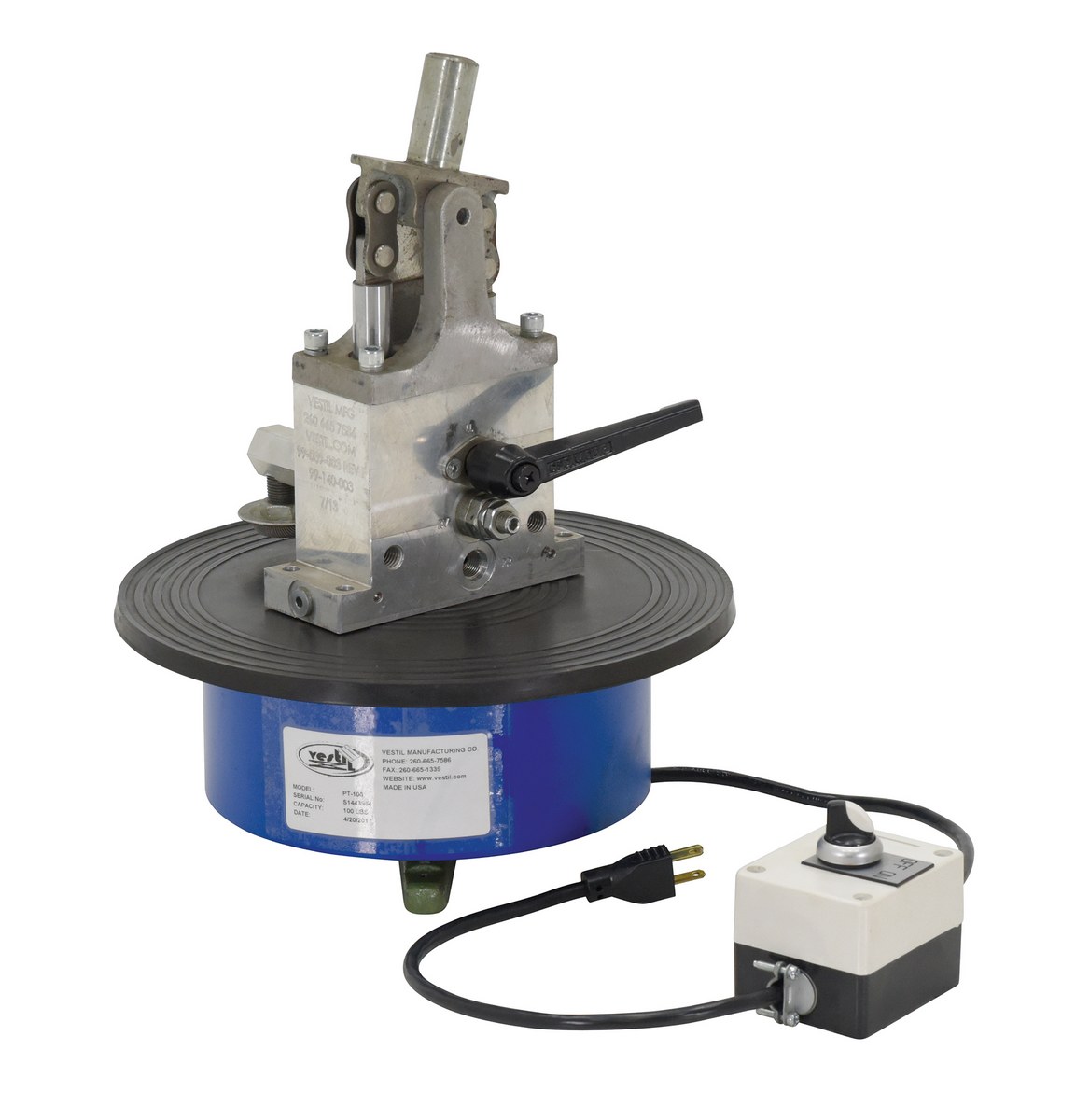 The powered turntable helps keep tedious material handling at your fingertips. Easy, smooth, clockwise rotation for hundreds of applications. An on/off selector switch is incorporated with a cord that provides power to the unit. A side skirt to protect items from getting into the rotating mechanism is standard.