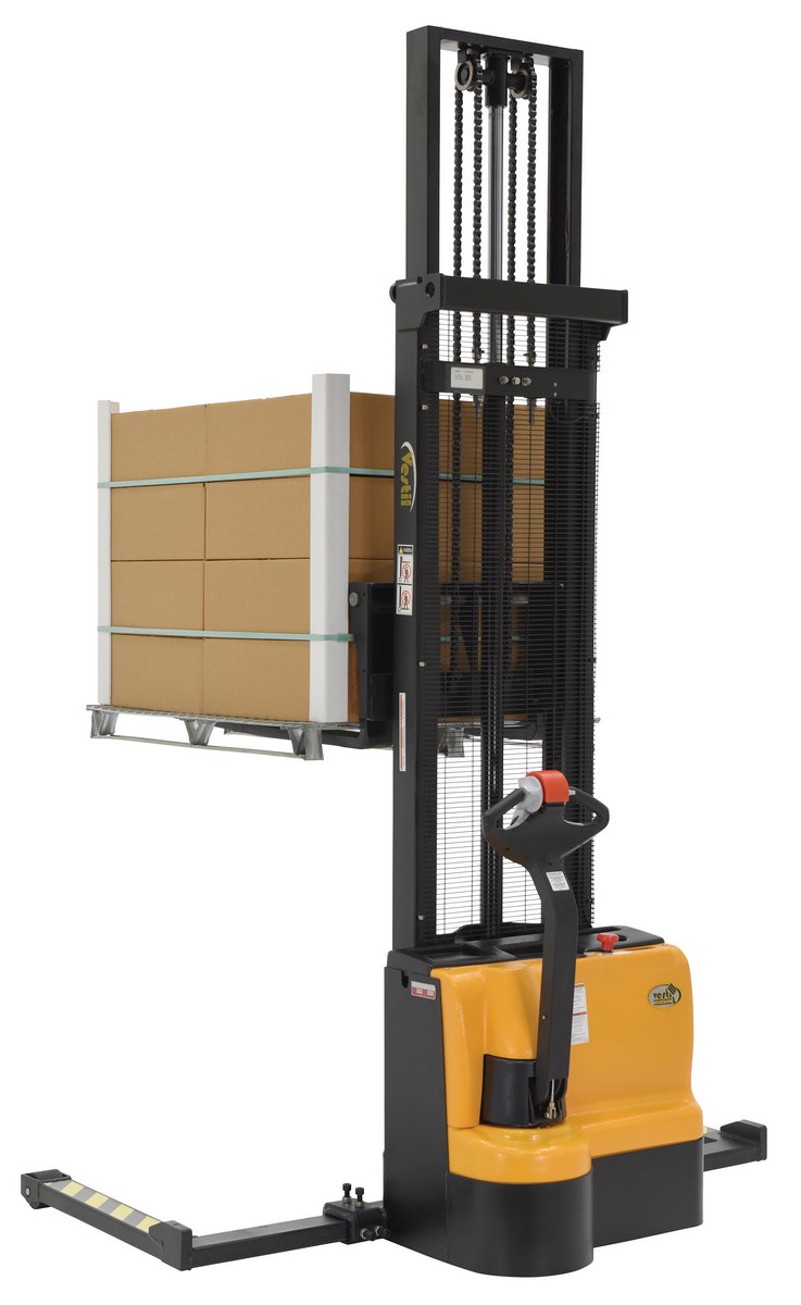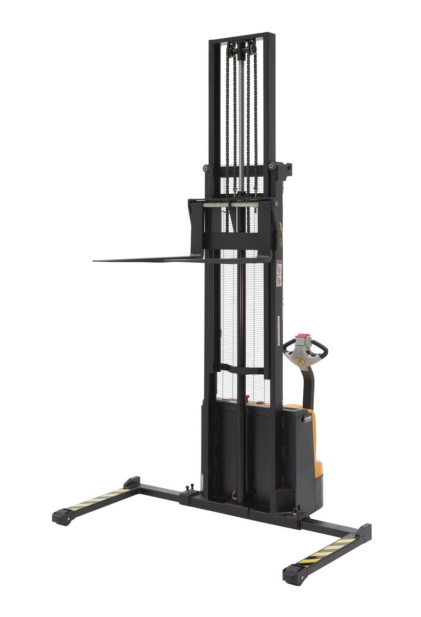 Steel Adjustable Double Mast Stacker 150 In. Raised Height 2200 Lb. Capacity Black / Yellow