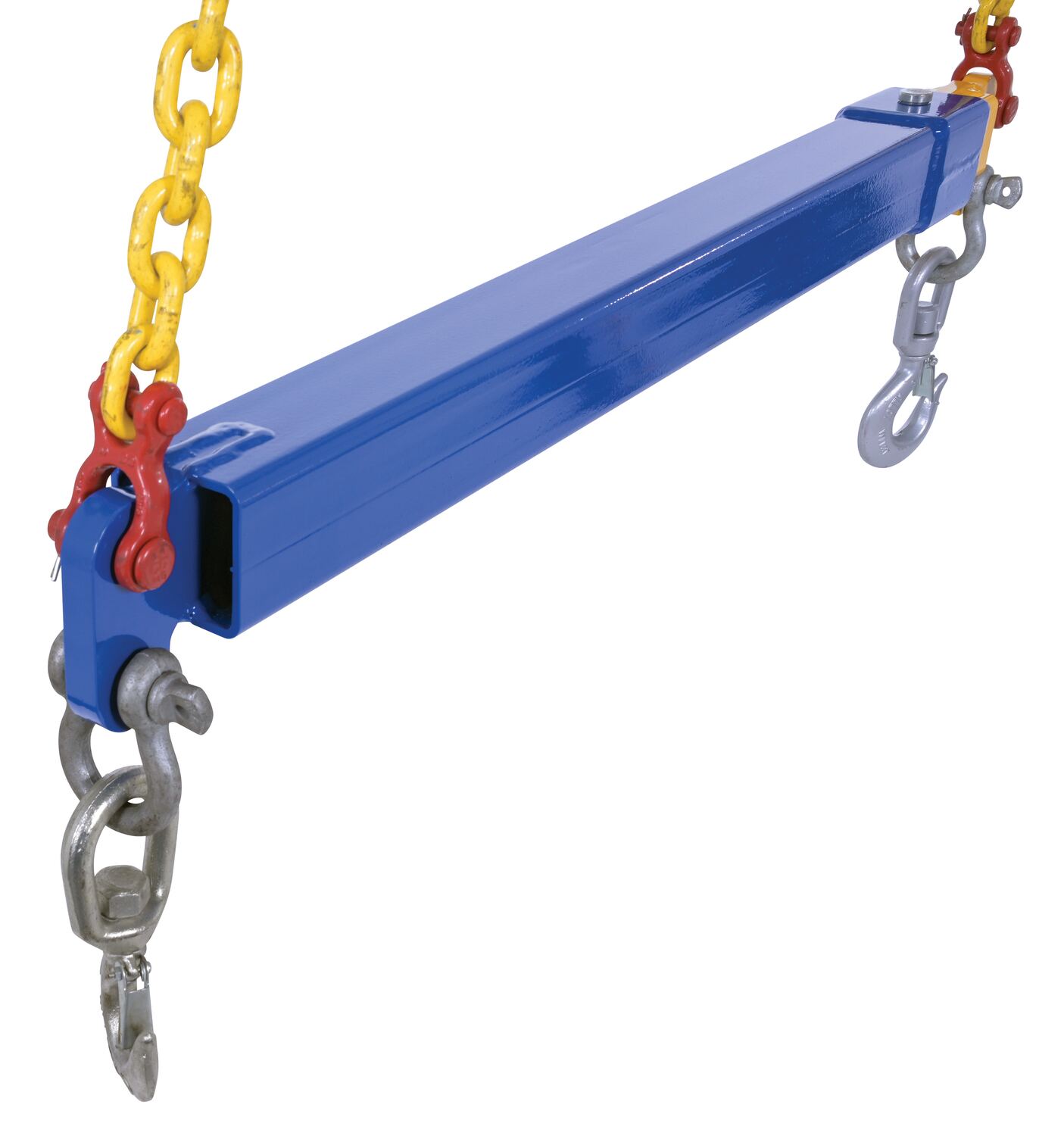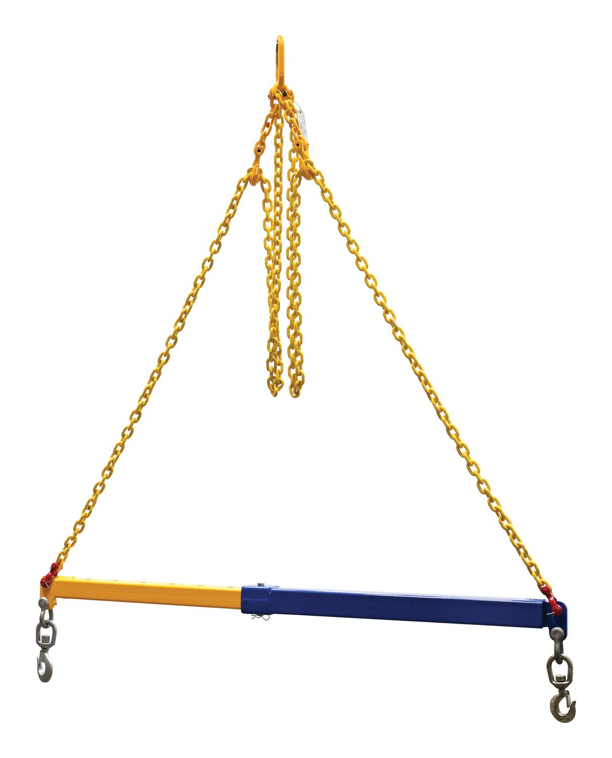 When a heavy, awkward, sized item needs to be lifted, look for your telescoping spreader beam! This beam can be modified to fit the situation and the users’ needs, quickly and efficiently. Two swivel hooks included, one on each end of the beam. Built of steel with a blue and yellow powder coated finish.