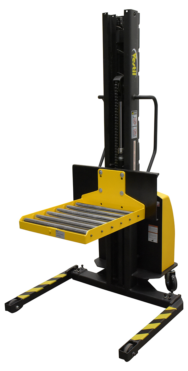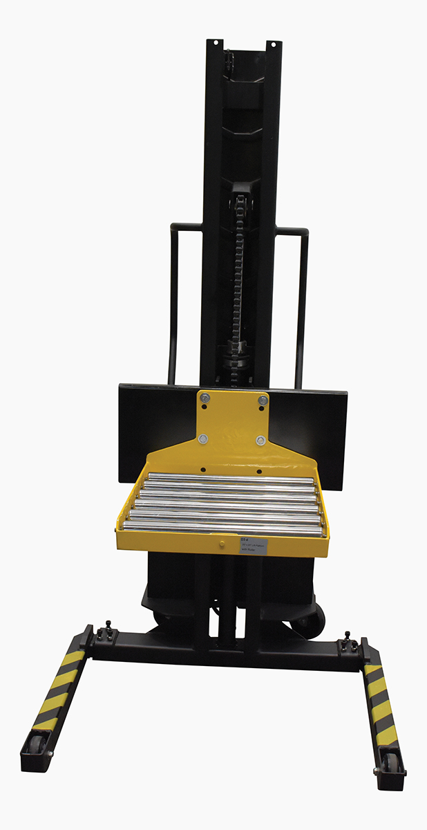 A roller platform provides the user with an ergonomically friendly way to load and unload products. With an open design, products can be placed on the platform from multiple sides. Perfectly attaches to the power lift stacker and can be maneuvered efficiently. With a small footprint, the unit can be stored until further use.