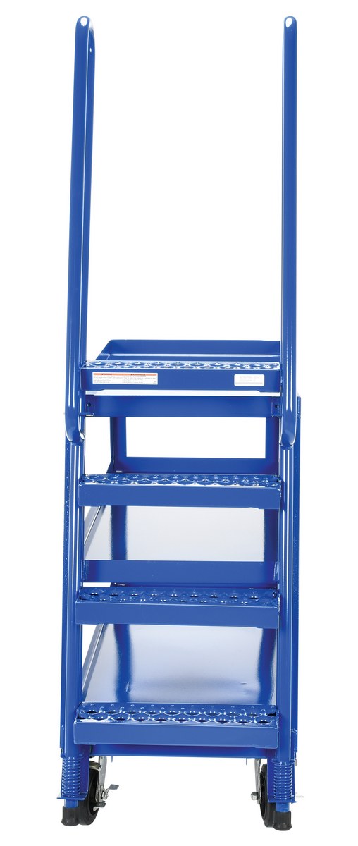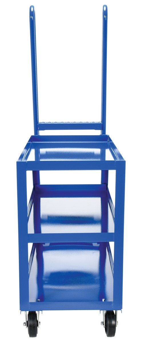 This oversized hi-duty stock picker truck is perfect for large jobs. Ideal for oversized cartons, boxes, parts, and supplies. A spring loaded steel ladder for sure, safe climbing, and loading. Steps have non-skid footing with self-cleaning surface. This stock picker truck has three (3) shelves. Built of durable steel construction. Unit is powder coated a blue finish.