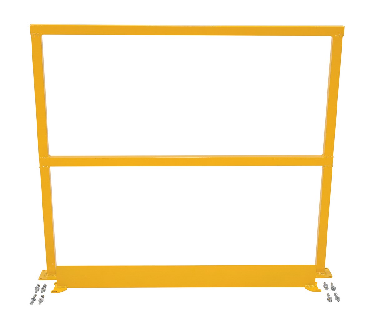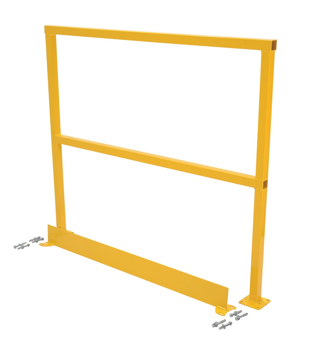Steel square safety Handrail provides an economical way to protect people and machinery. Applications include loading docks, floor openings, walkways, and mezzanines. Highly visible safety yellow powder coat finish, hardware included.
