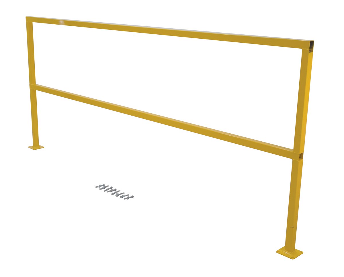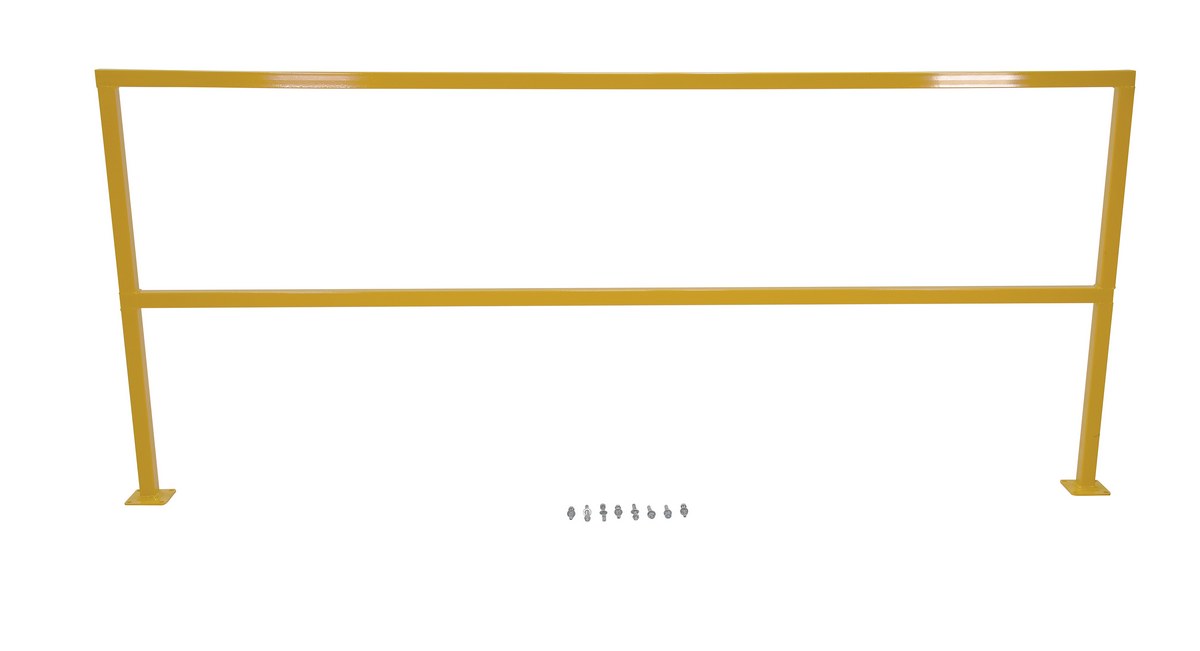 Steel square safety Handrail provides an economical way to protect people and machinery. Applications include loading docks, floor openings, walkways, and mezzanines. Highly visible safety yellow powder coat finish, hardware included.
