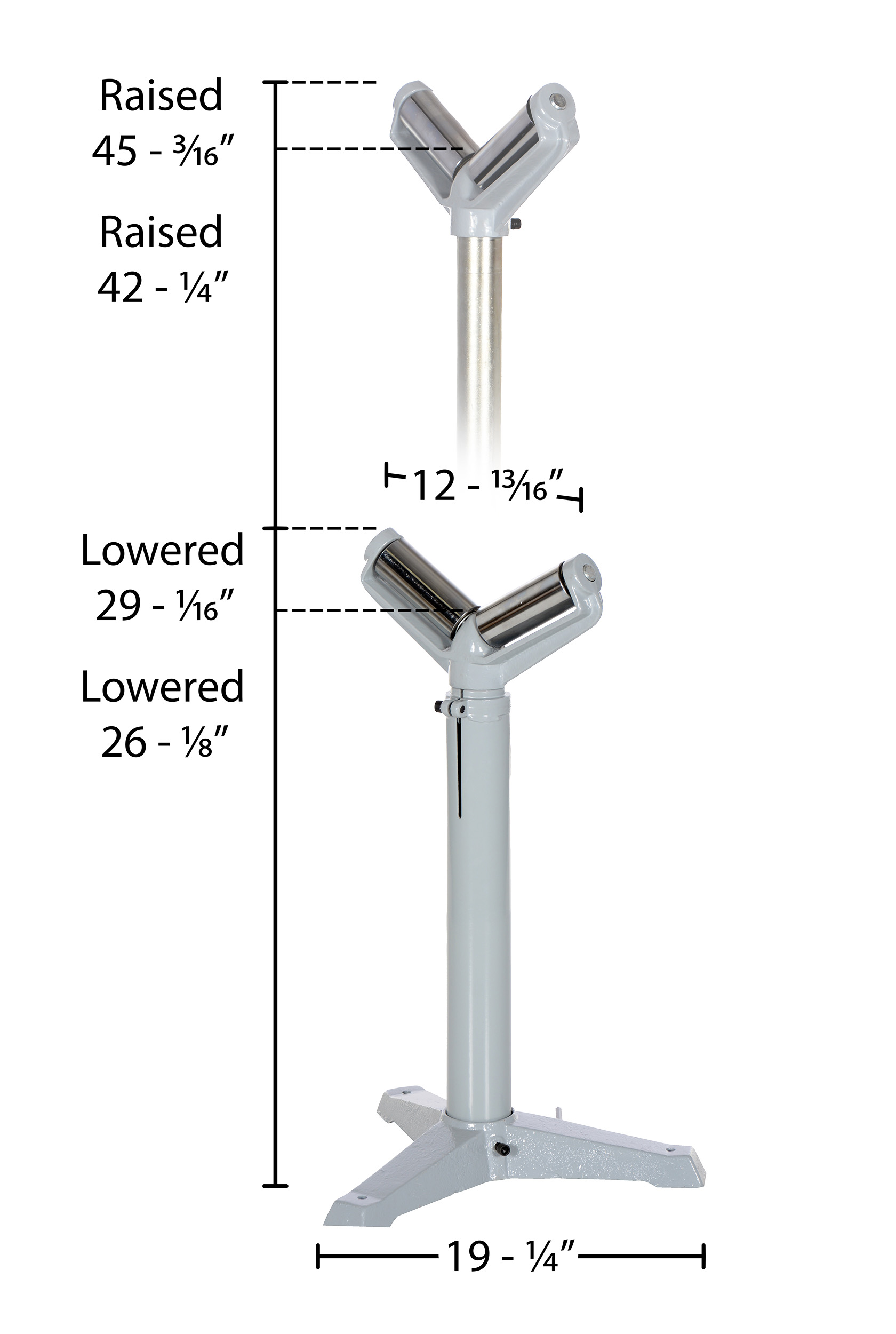 Steel Roller Stand Quantity 27 In. to 42 In. Raised Height 1,760 Lb. Capacity Silver