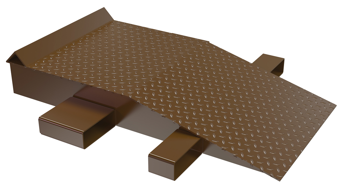 Steel Wheel Riser With Roll Off Guard 72 In. x 24 In. x 10 In. 40,000 Lb. Capacity BrownA standard wheel riser is a great asset to have available when working in the shipping and receiving industries. But, this wheel riser is more than standard. With a steel construction, this unit includes a roll off edge guard that acts as a stop point. This allows the user to safely mount the wheel riser without the fear of going too far. The raised tread surface gives added traction throughout the ascending and descending action. Fork pockets are attached for simple movement of the unit between work areas. Liquid paint finish.