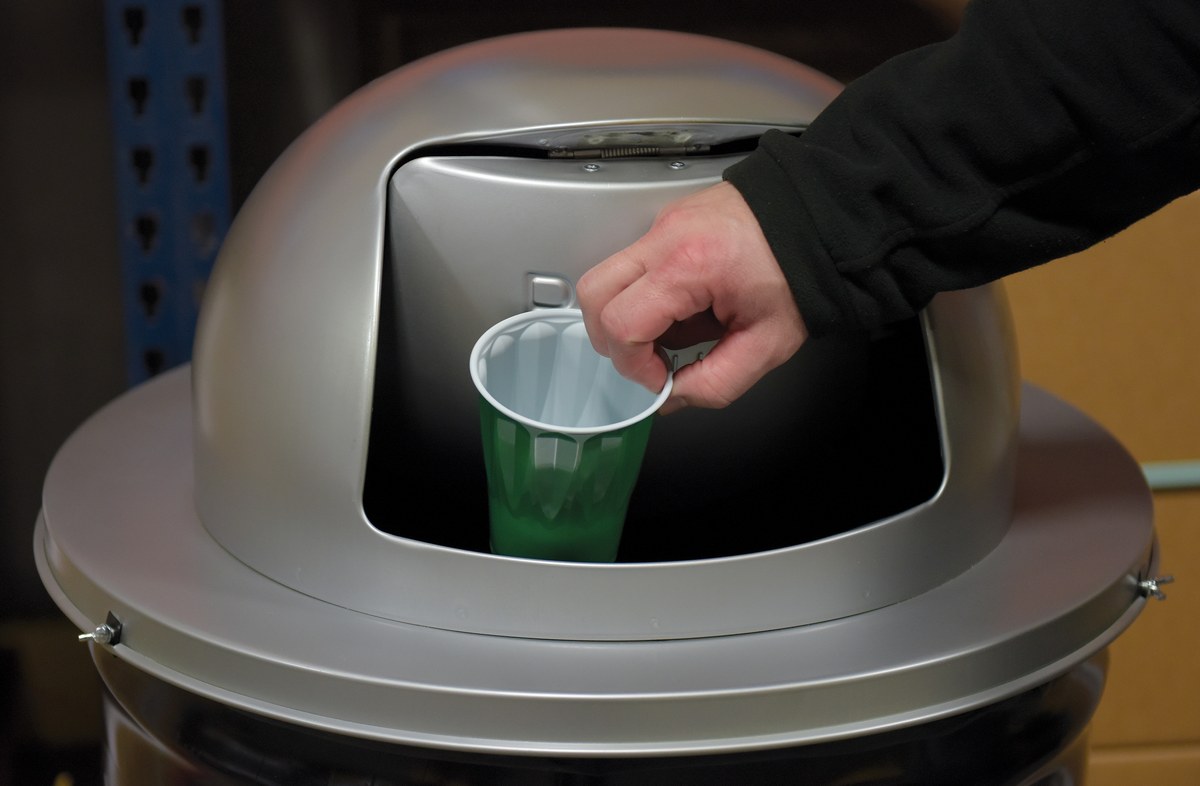 Convert empty drums into waste recycling, general or disposal containers with a waste disposal top. Spring-loaded door closes automatically to prevent bugs from entering. Lid has an outside diameter of 23-1/2”. Powder-coat finish minimizes scratches and abrasions.