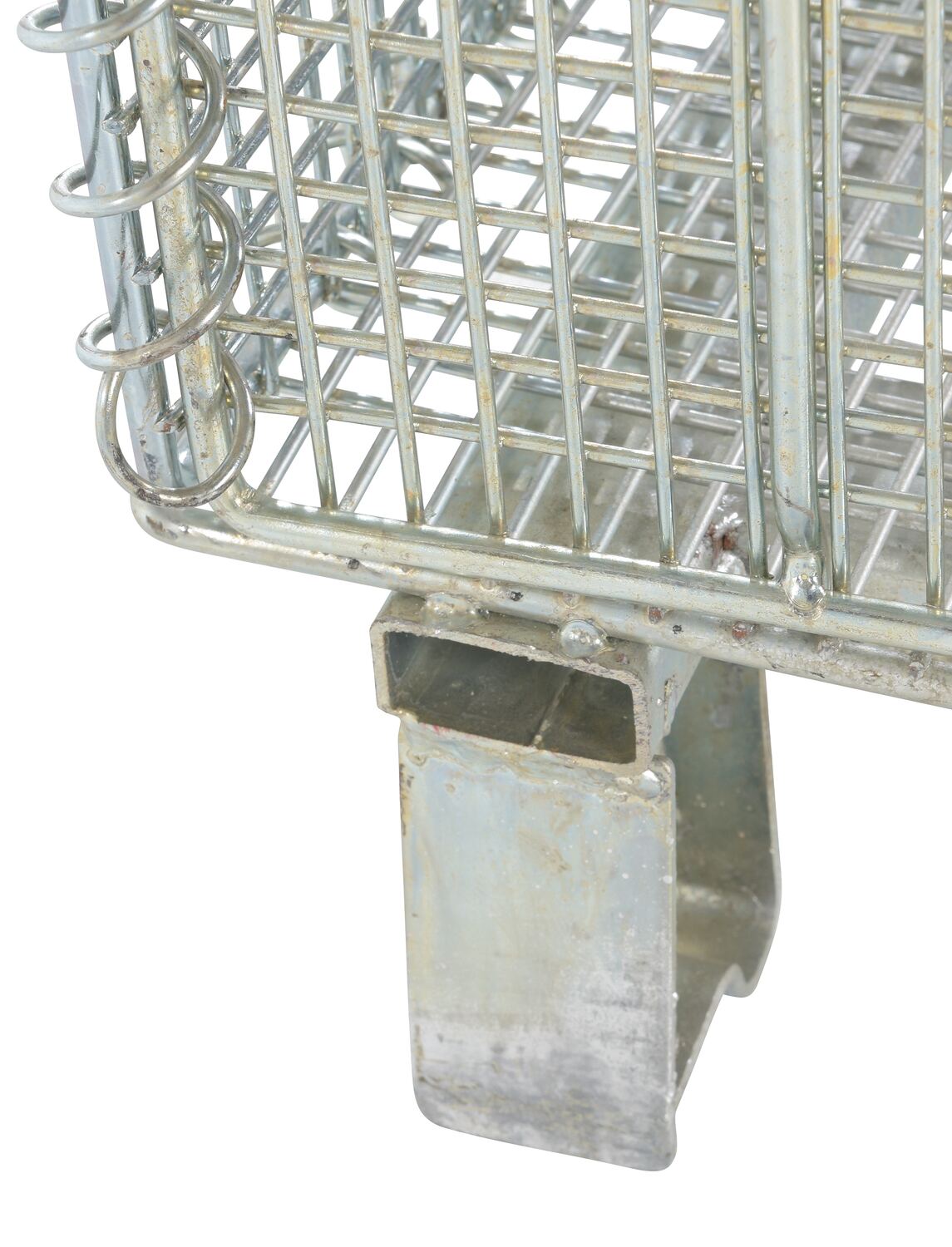 Galvanized Steel Mesh Container 20 In. x 32 In. x 21 In. 1,000 Lb. Capacity GrayThis wire containers allows for efficient storage and transportation. Legs are wrapped and welded around base to eliminate sharp edges. Container can be stacked four (4) high and has clearance underneath to allow movement by fork or pallet trucks.
