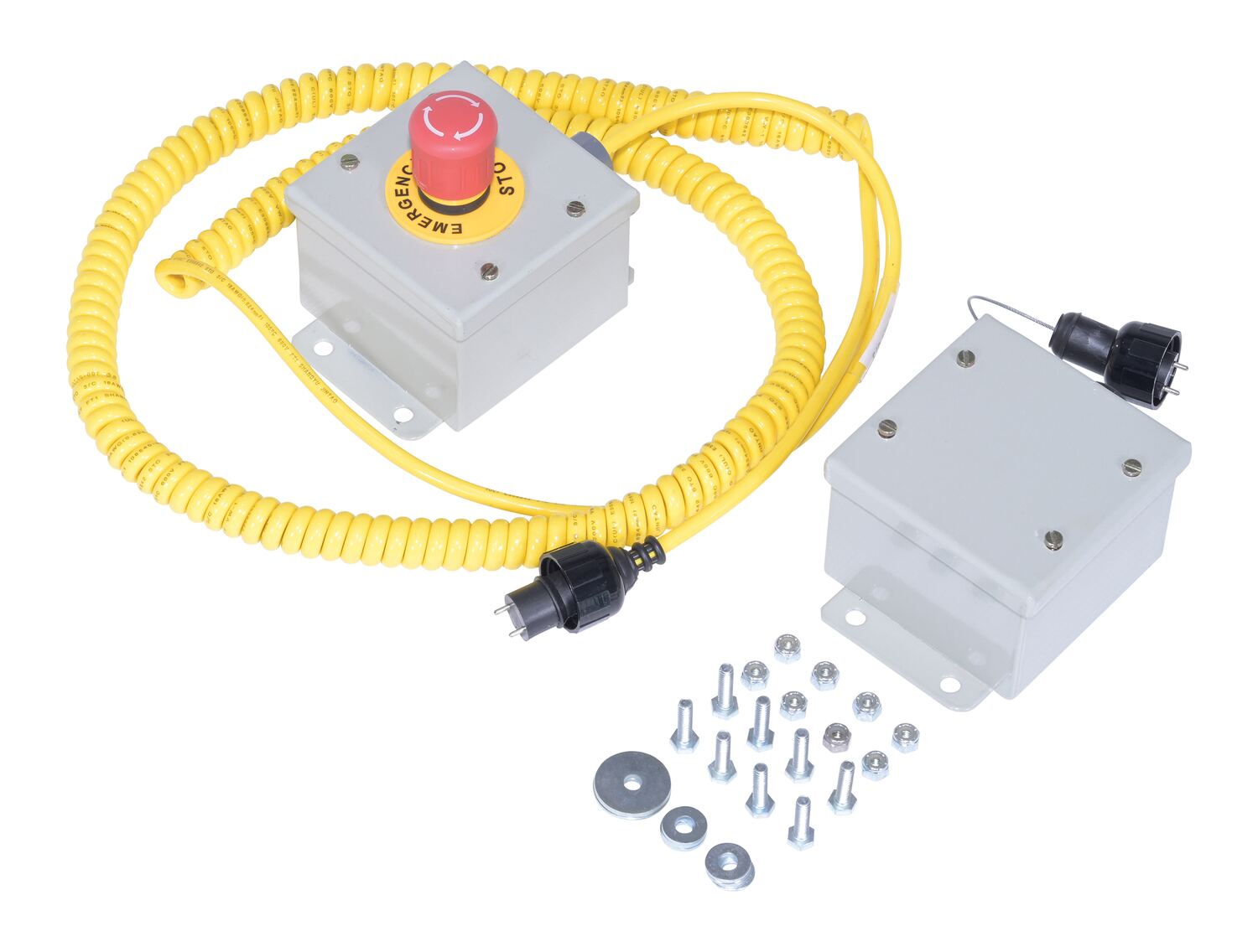 The emergency stop button kit is great for the distribution and shipping facilities. The unit allows the operator to shut off the fork truck power from the work platform. The unit is designed to work on gas powered fork trucks, and can be adapted to work on electric or diesel fork trucks. When installed, simply push in on the emergency stop button to immediately stop the unit.
